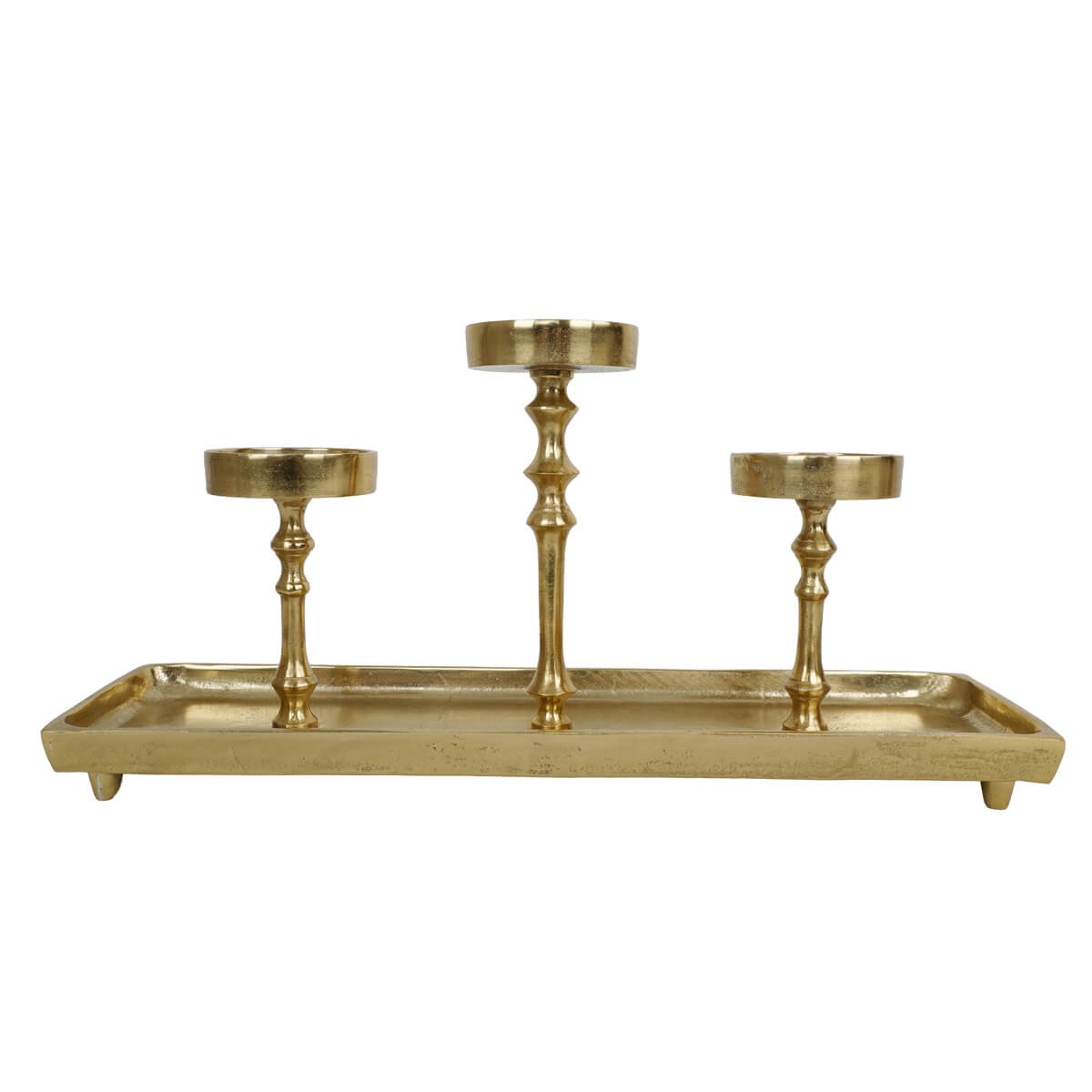 Candelabro Oro in Alluminio a 3 Bracci – Porta Candele Elegante 48x13,5xH.24,5 cm