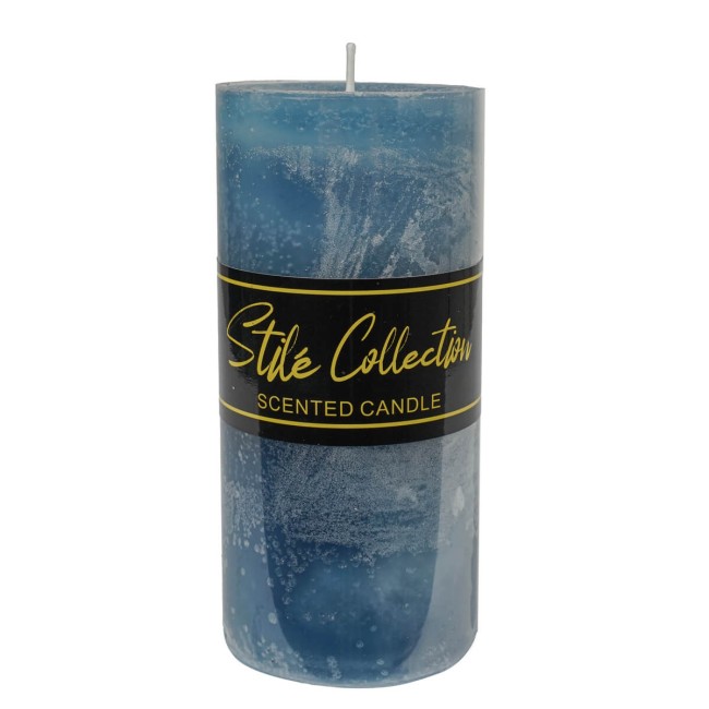 Candela Profumata Blu Stilé D.7xH.15 cm – Fragranza Marina e Muschiata, 80 Ore di Durata