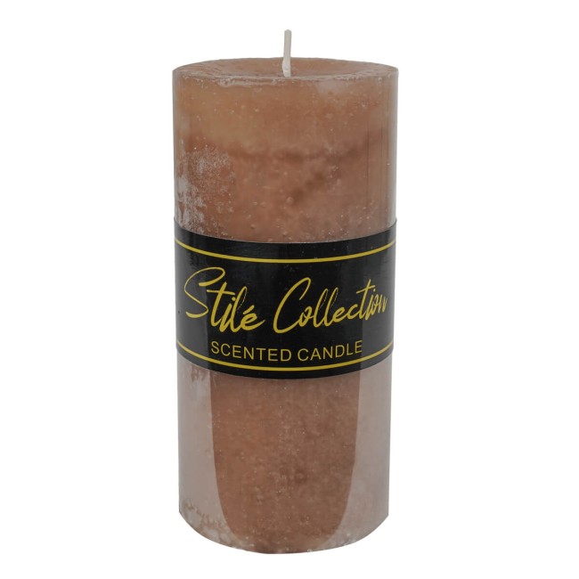 Candela Profumata Marrone Stilé D.7xH.15 cm – Lunga Durata 80h, Cera di Soia e Paraffina, Fragranza Agrumata e Speziata