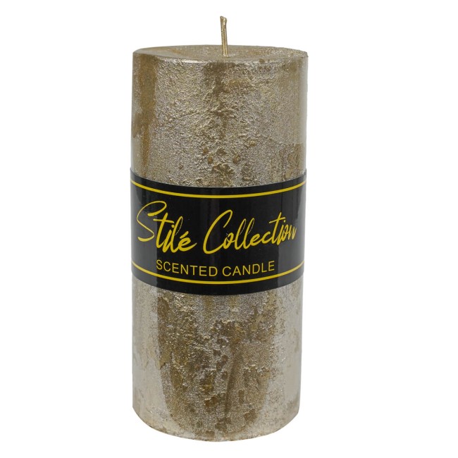 Candela Profumata Oro Stilé Ø7xH15 cm – Lunga Durata 80h, Cera di Soia e Paraffina, Fragranza Fruttata e Vanigliata