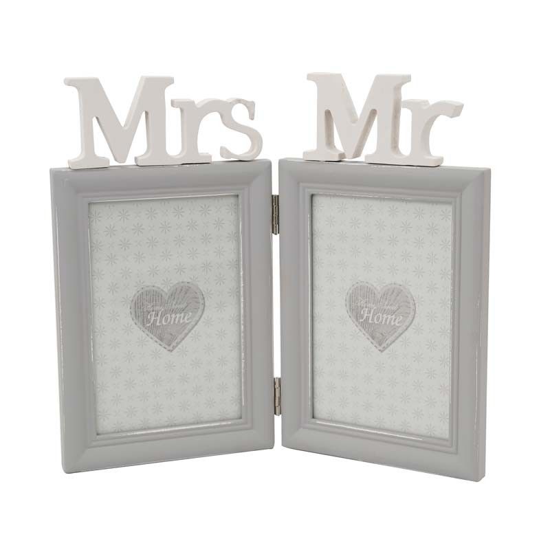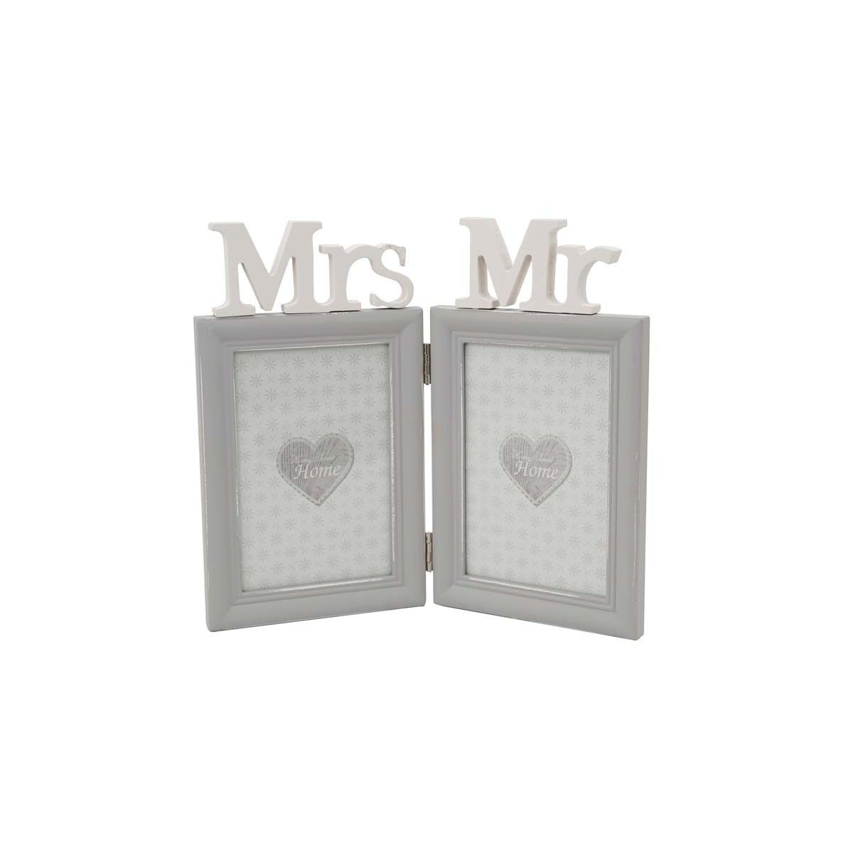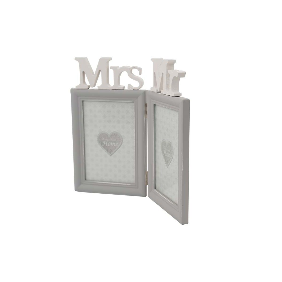 Cornice Mr & Mrs in Legno Grigio 27x23 cm