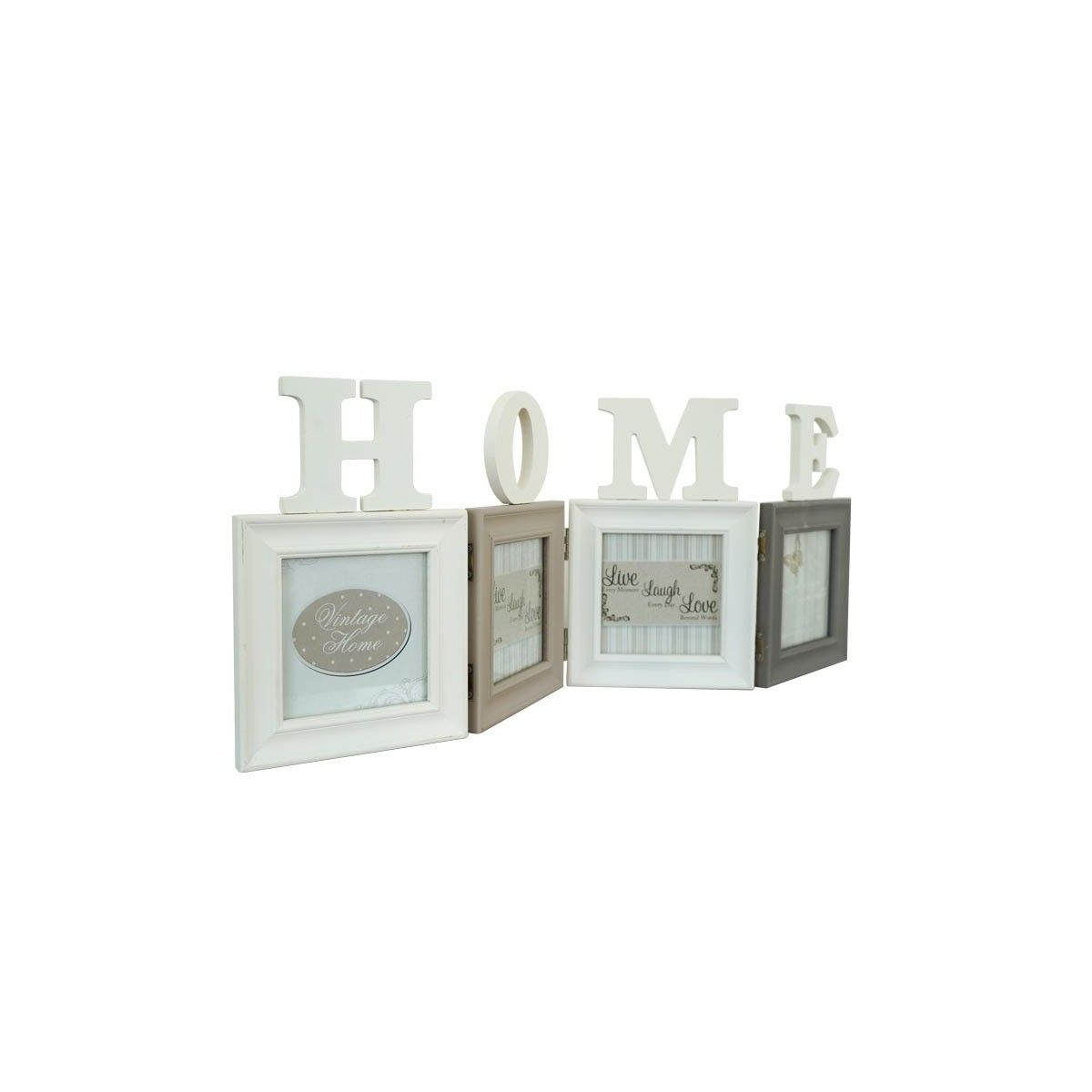 Quattro Cornici per Foto con Scritta Home in Legno