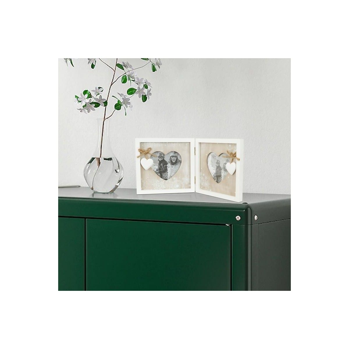 Cornice Doppia per Foto con 2 Cuori in Legno