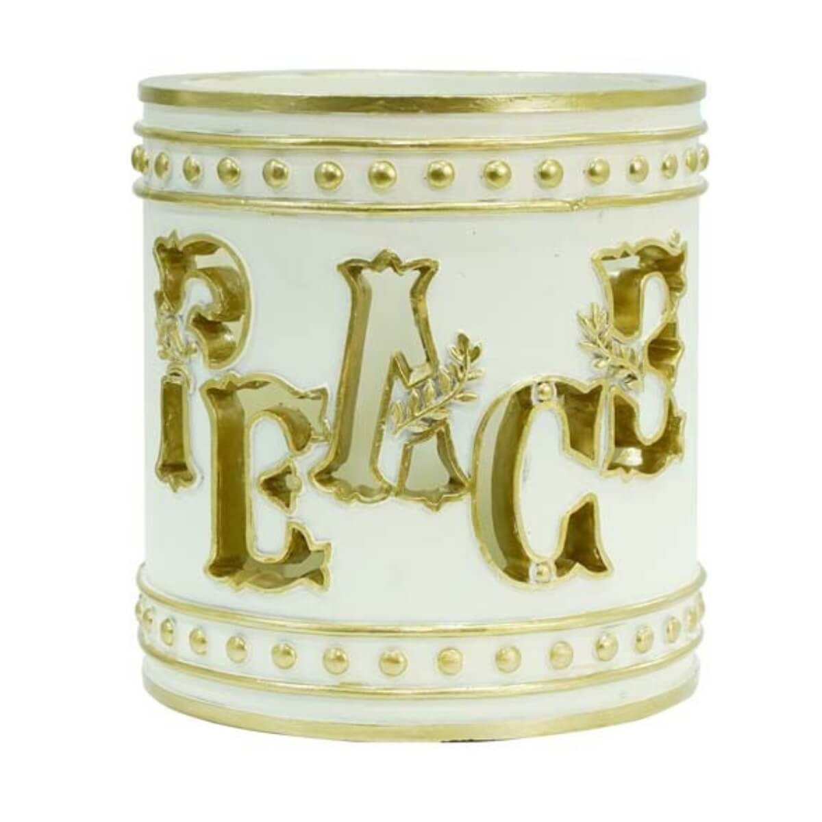 Porta Candela Natalizio LED “Peace” in Resina Bianco e Oro – Decorazione Elegante Ø11 cm