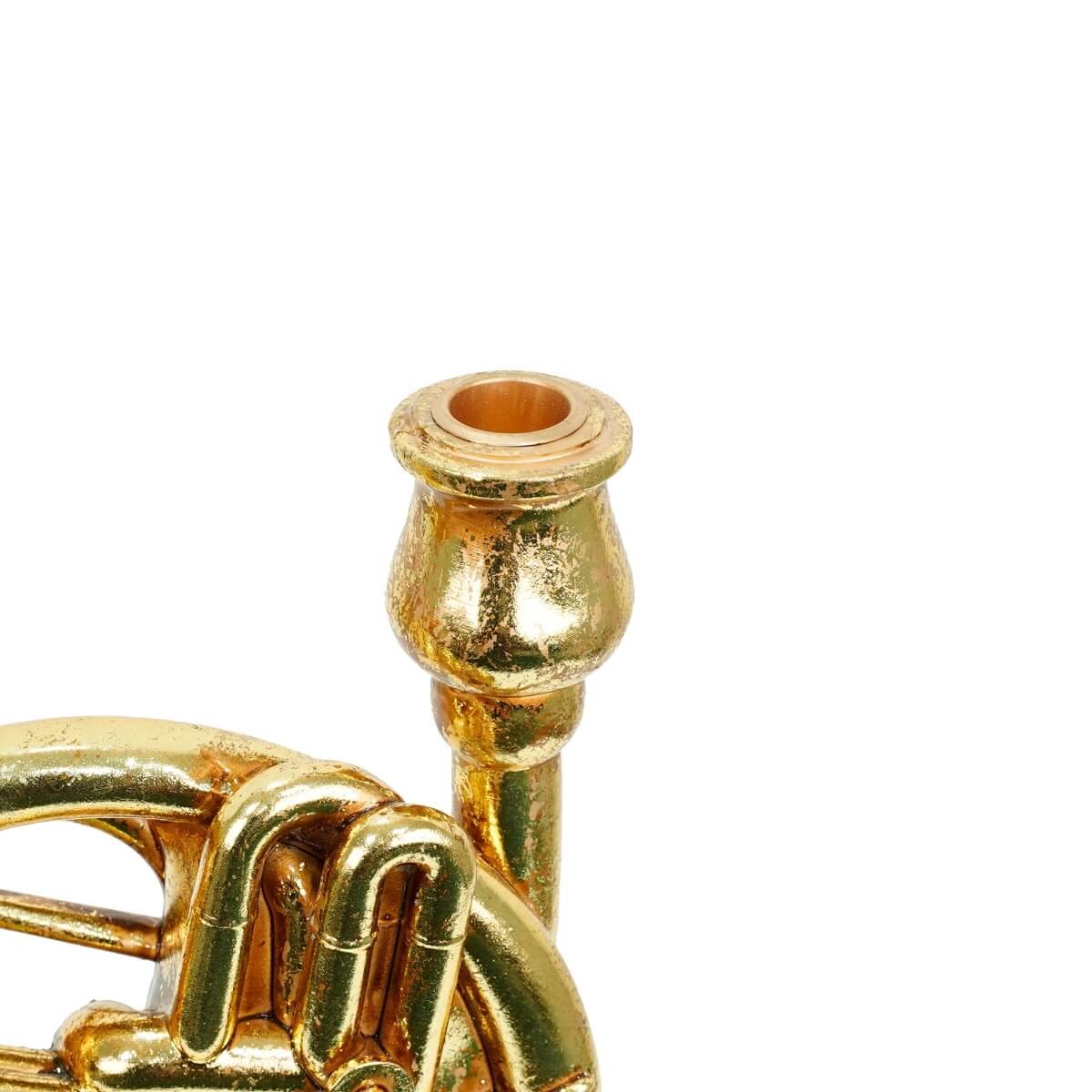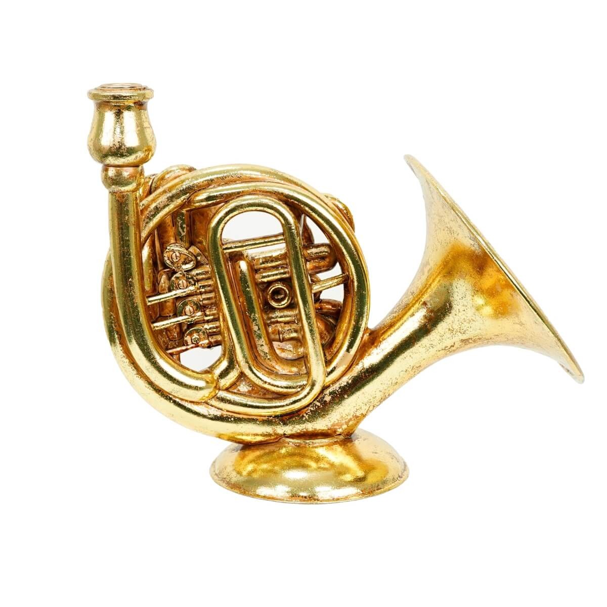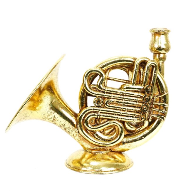 Candelabro Natalizio Corno Francese in Resina Oro – Eleganza Festiva per le Tue Decorazioni
