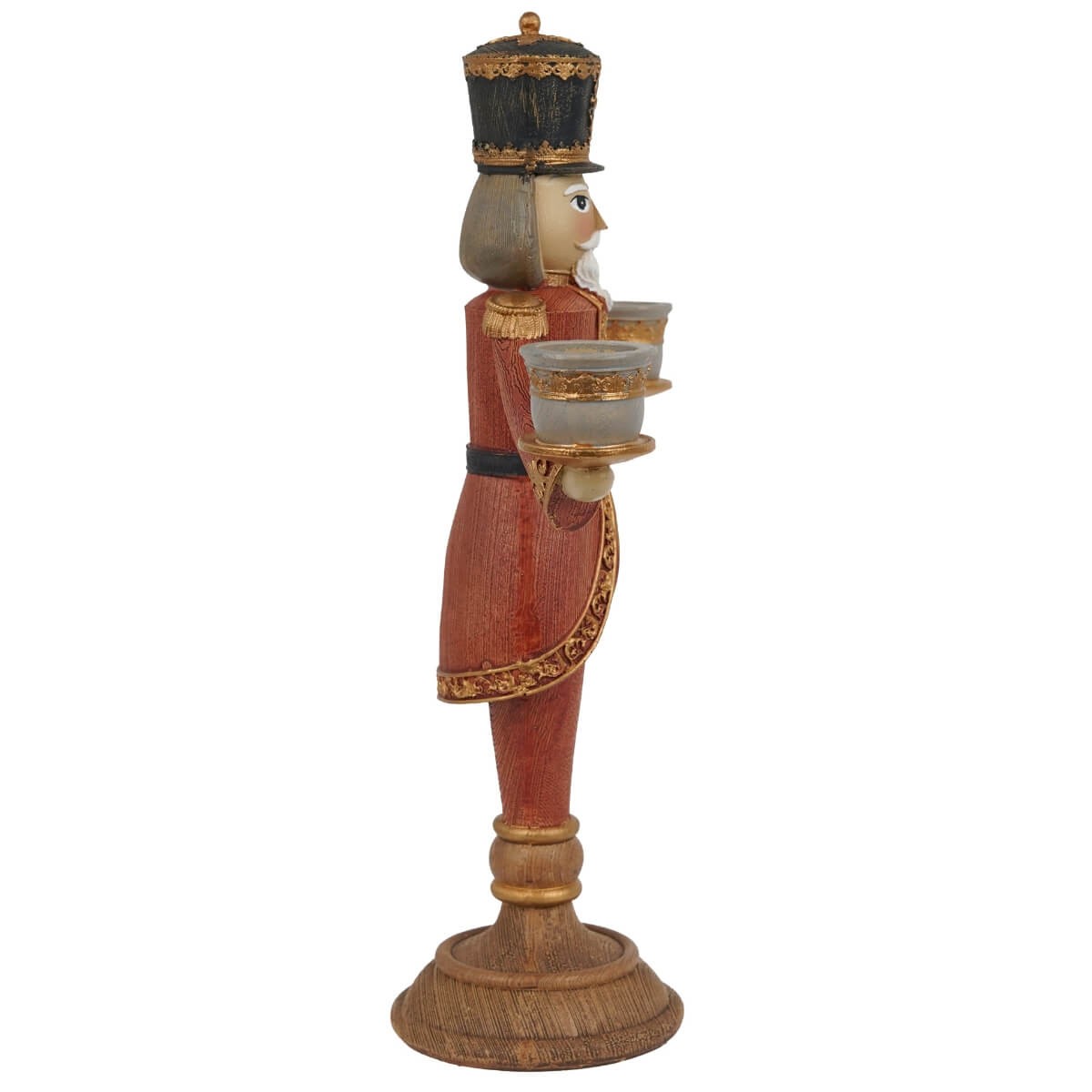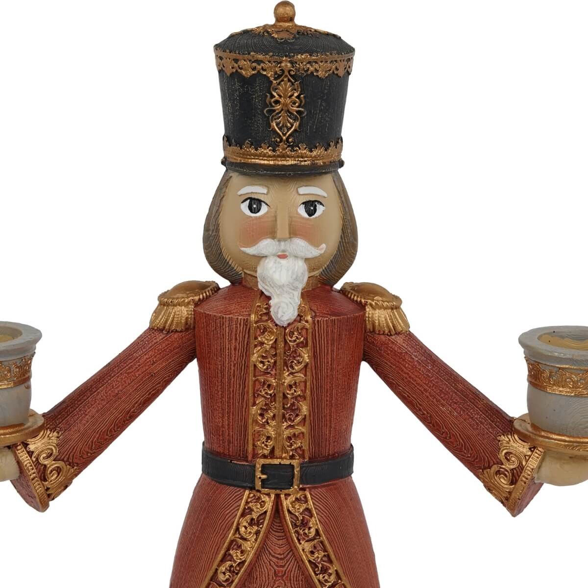 Porta l’incanto del Natale nella tua casa con il raffinato candelabro Schiaccianoci in resina, ispirato al celebre personaggio delle fiabe natalizie. Con un design regale e dettagli curati nei toni caldi del rosso e dell’oro, questo elegante portacandele è l'accessorio perfetto per creare un’atmosfera festiva e suggestiva.