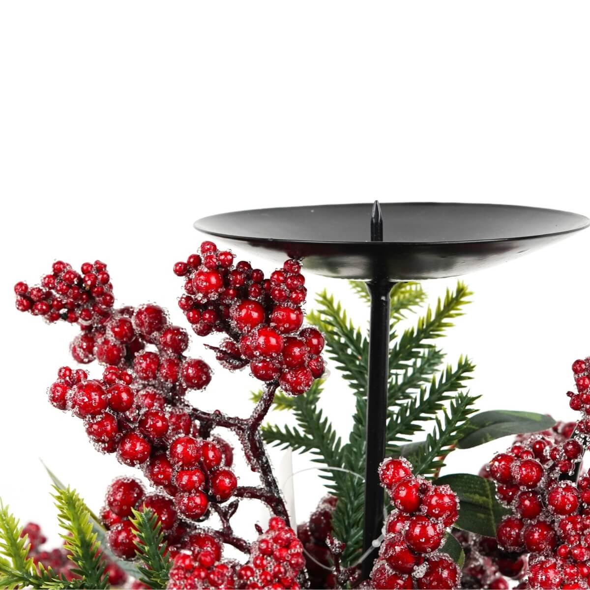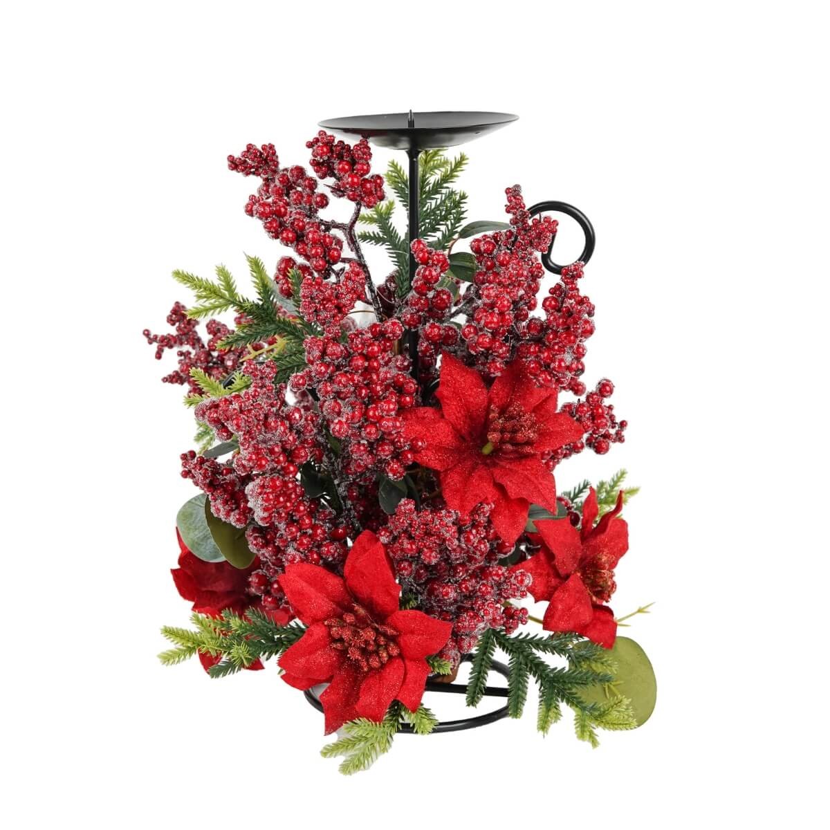 Candelabro natalizio con bacche, foglie e stella di Natale – H.33 cm