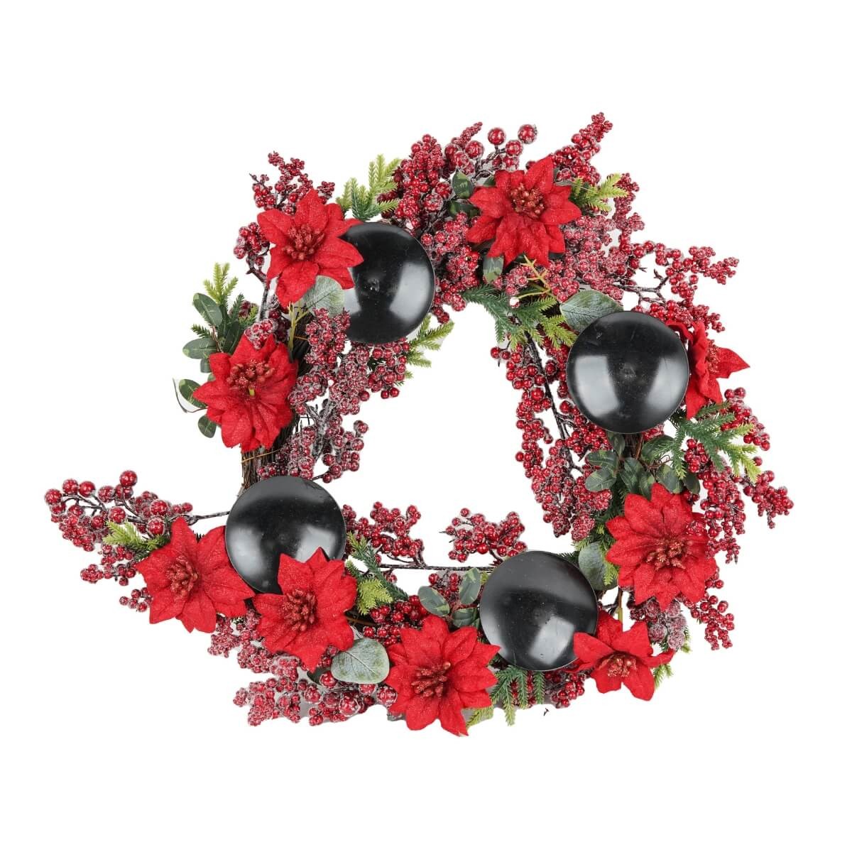 Ghirlanda Natalizia Porta Candele con Bacche, Foglie e Stelle di Natale – Ø 60 cm
