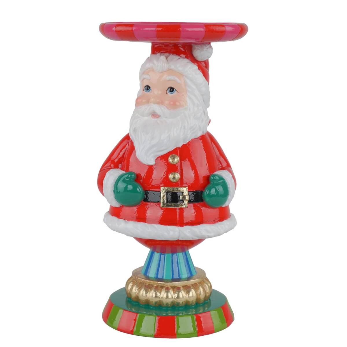 Candelabro Babbo Natale in Resina – Portacandele Natalizio 11,6x11,6xH.23 cm
