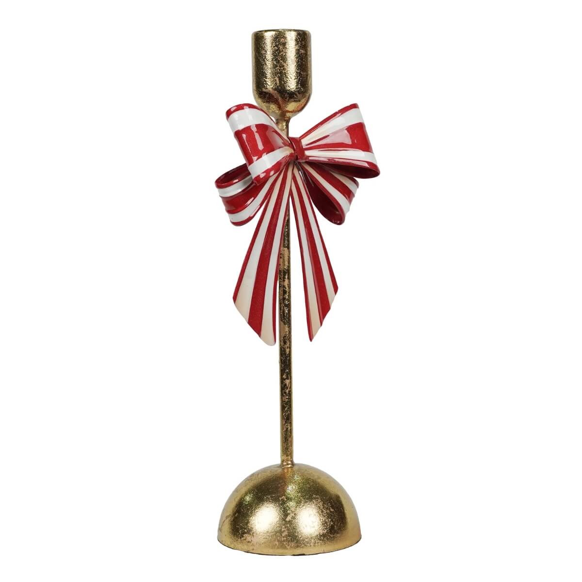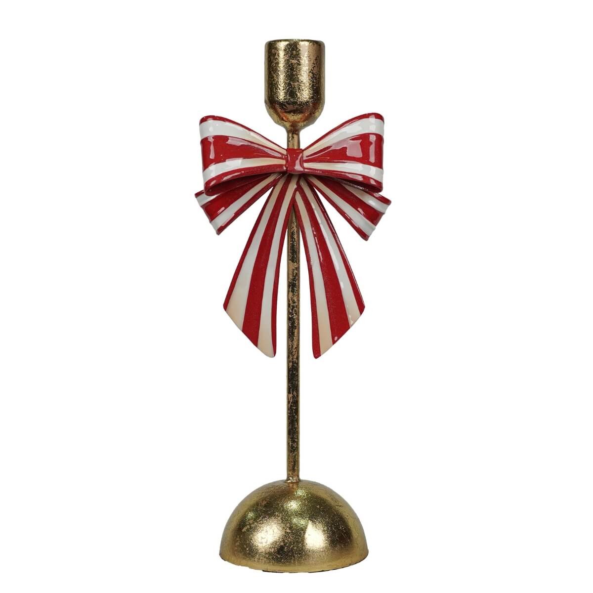 Illumina le tue feste con stile grazie al raffinato candelabro natalizio in metallo con fiocco rosso e bianco, un accessorio perfetto per arricchire la tavola o il salotto durante il periodo natalizio. Realizzato con materiali di qualità e rifinito nei minimi dettagli, questo elegante portacandela combina la brillantezza dell’oro con la vivacità del fiocco a righe, creando un effetto festoso e raffinato allo stesso tempo.