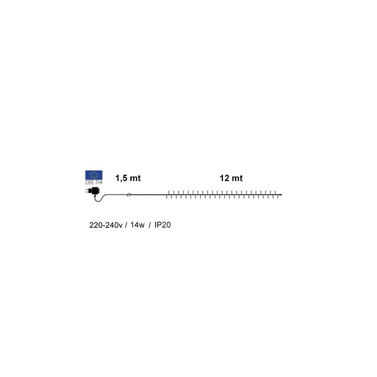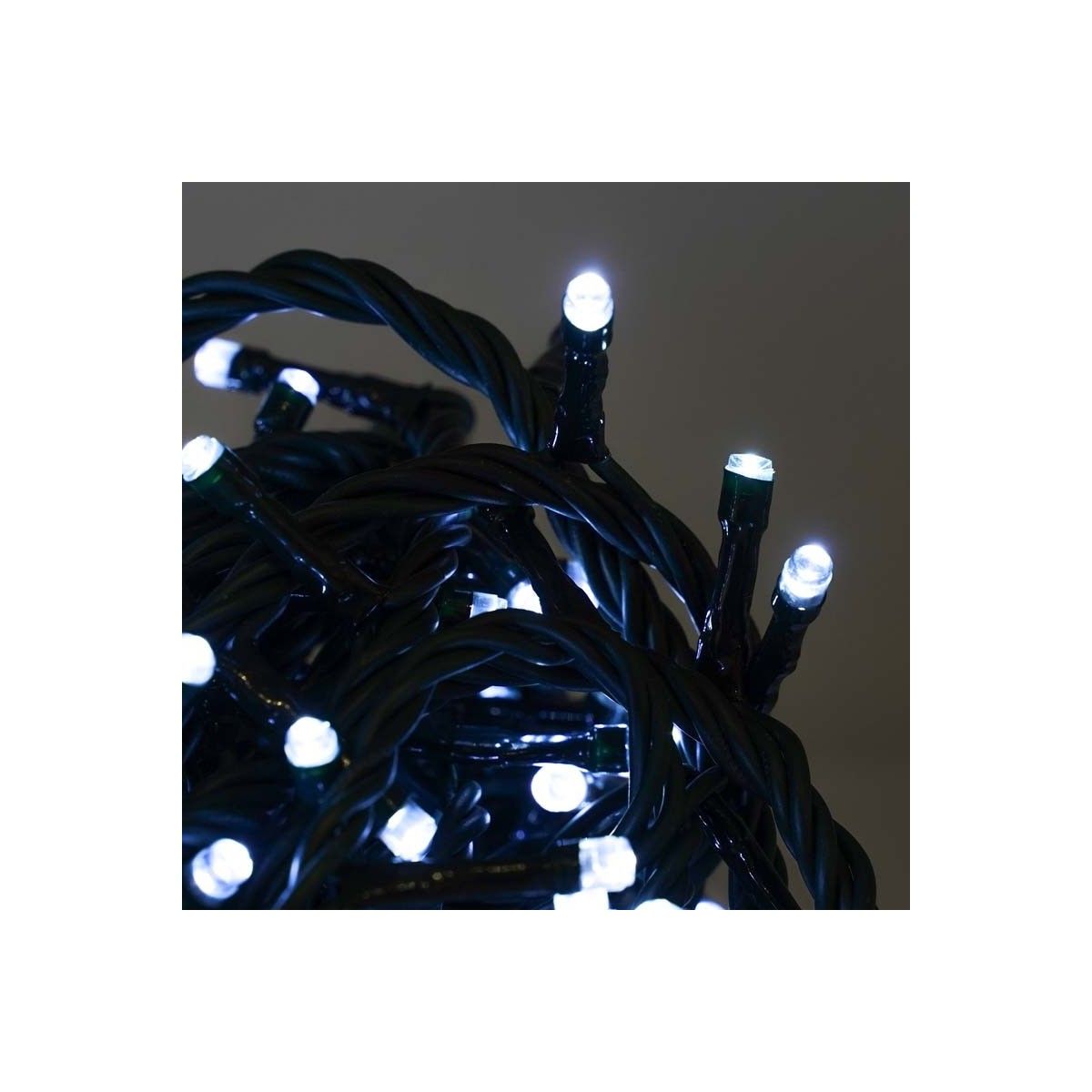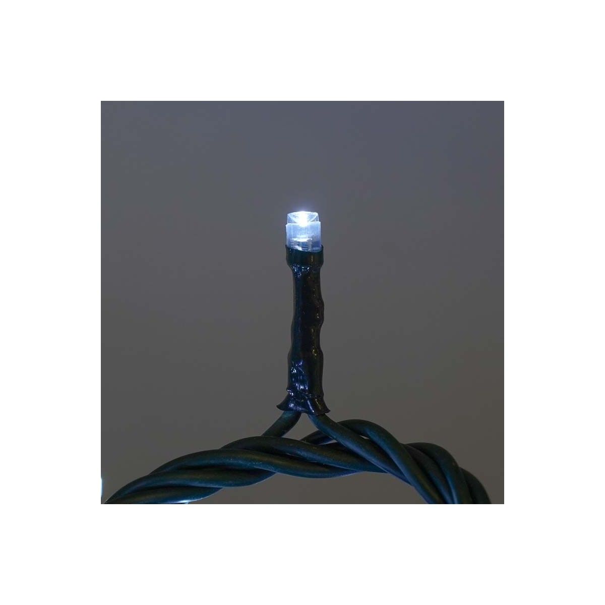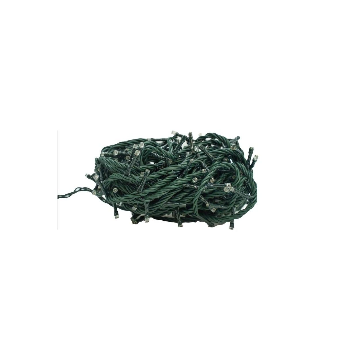 Catena luminosa con 240 Minilucciole Led Bianco Freddo distribuiti su 12 m di cavo verde scuro.