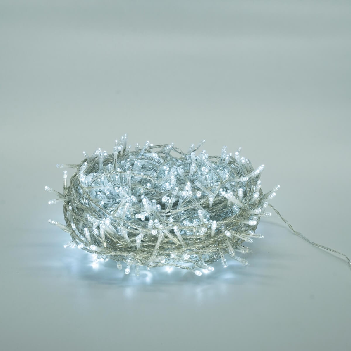 Catena 1300 Luci Led Bianco Freddo Cavo Trasparente Memory Control 65 metri, Uso Esterno