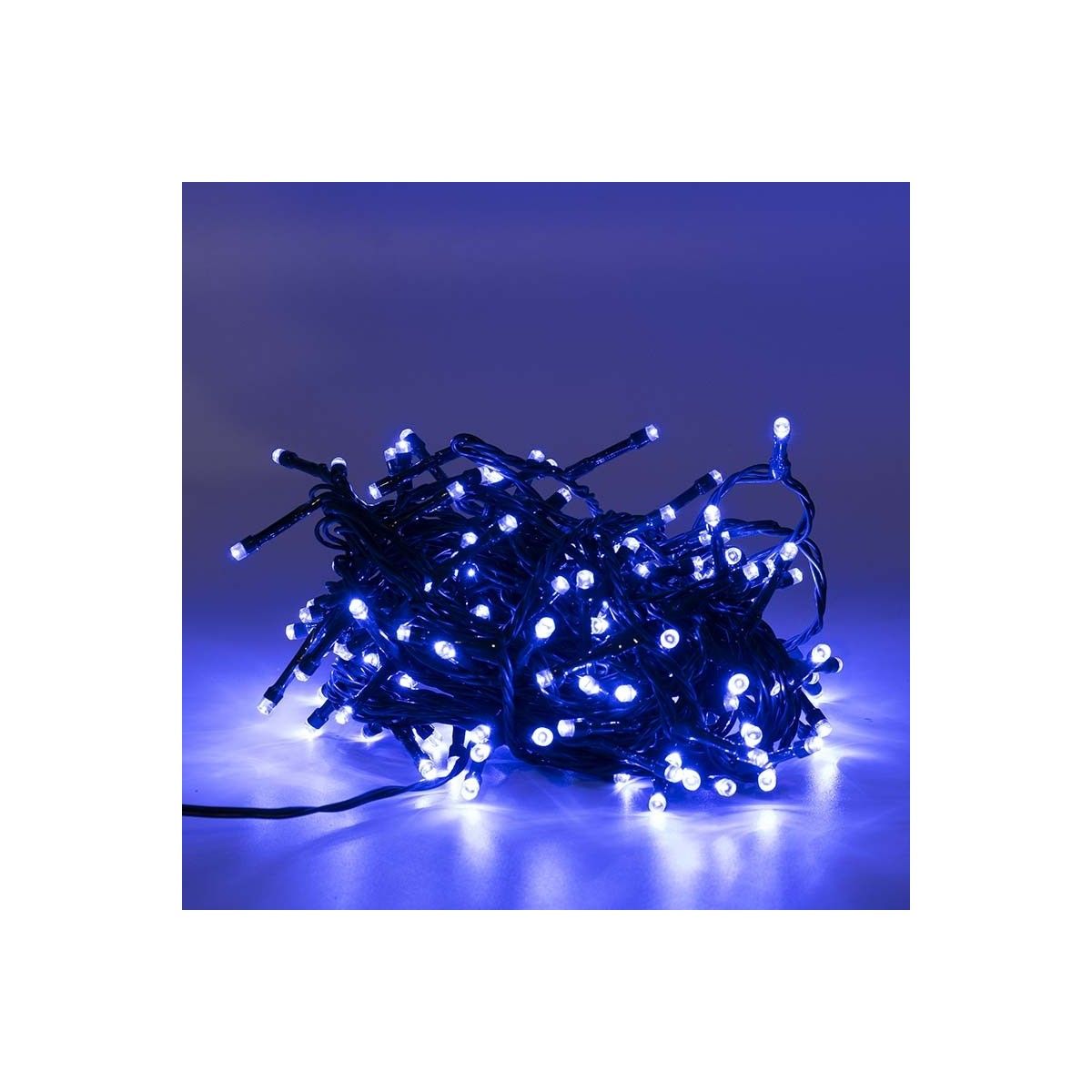 Catena Luminosa con 180 Luci Led Blu con Cavo Verde 3 metri, 8 Giochi Luci, Uso Esterno
