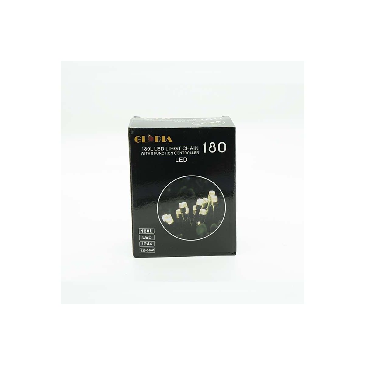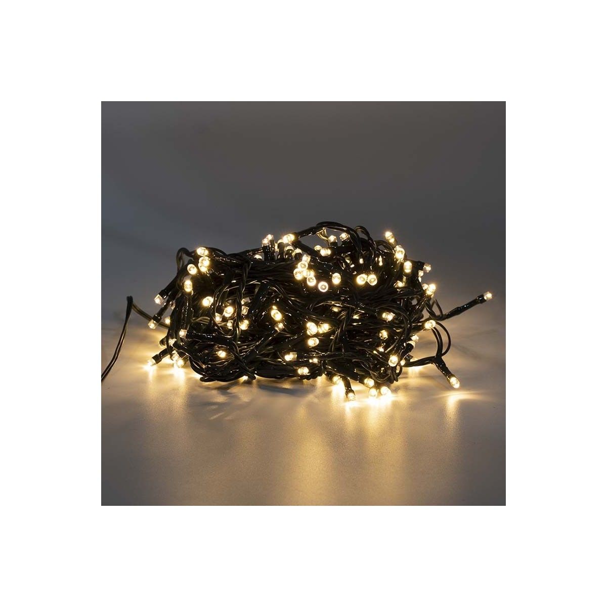 Catena Luminosa con 180 Luci Led Bianco Caldo con Cavo Verde 3 metri, 8 Giochi Luci, Uso Esterno