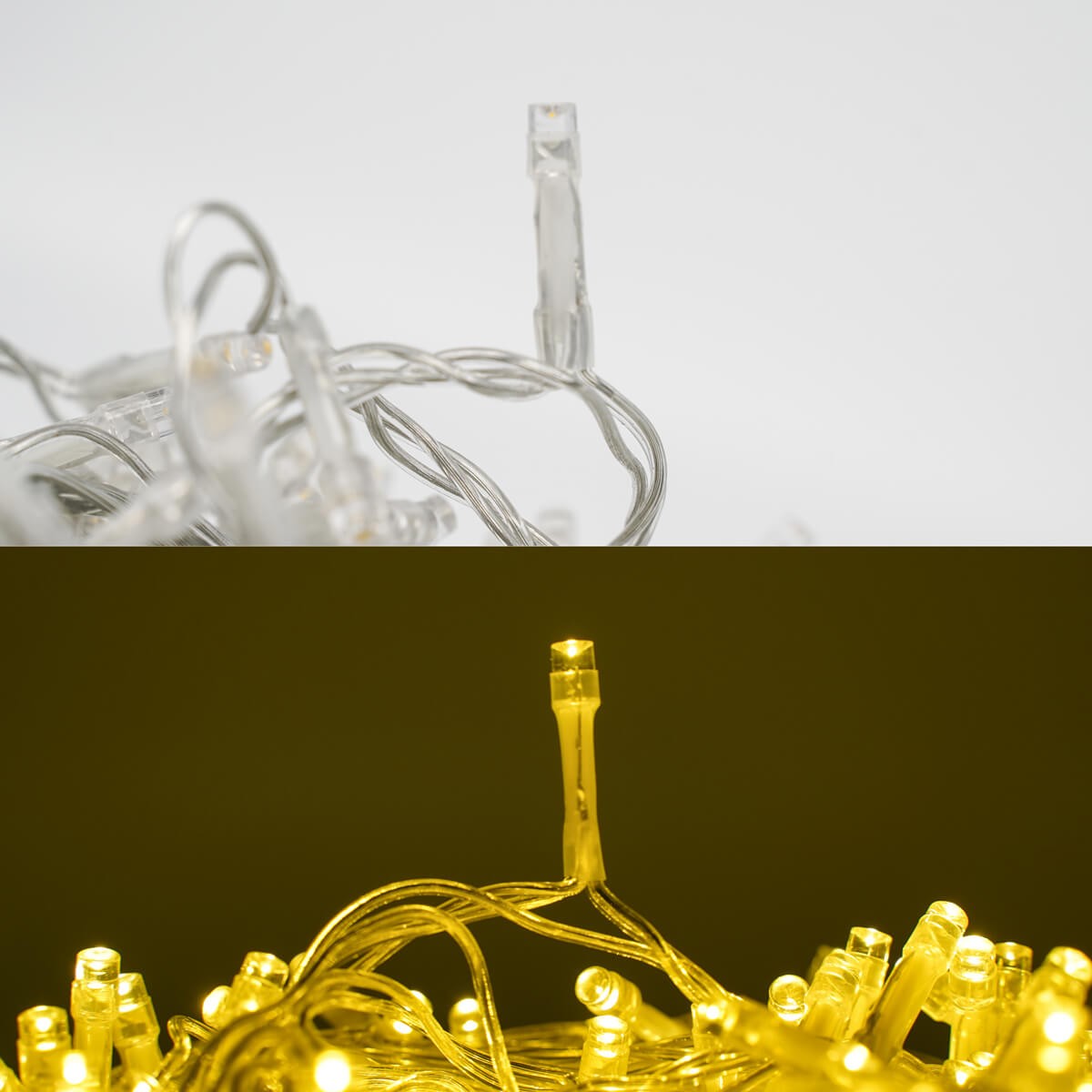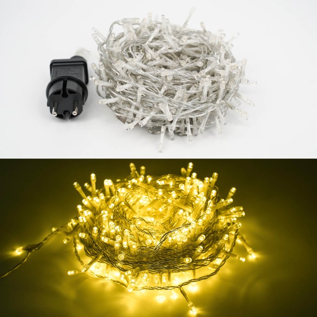 Catena Luminosa Bianco Caldo 300 Led| Cavo Trasparente| Funzione Memory |15 metri Uso Esterno IP44