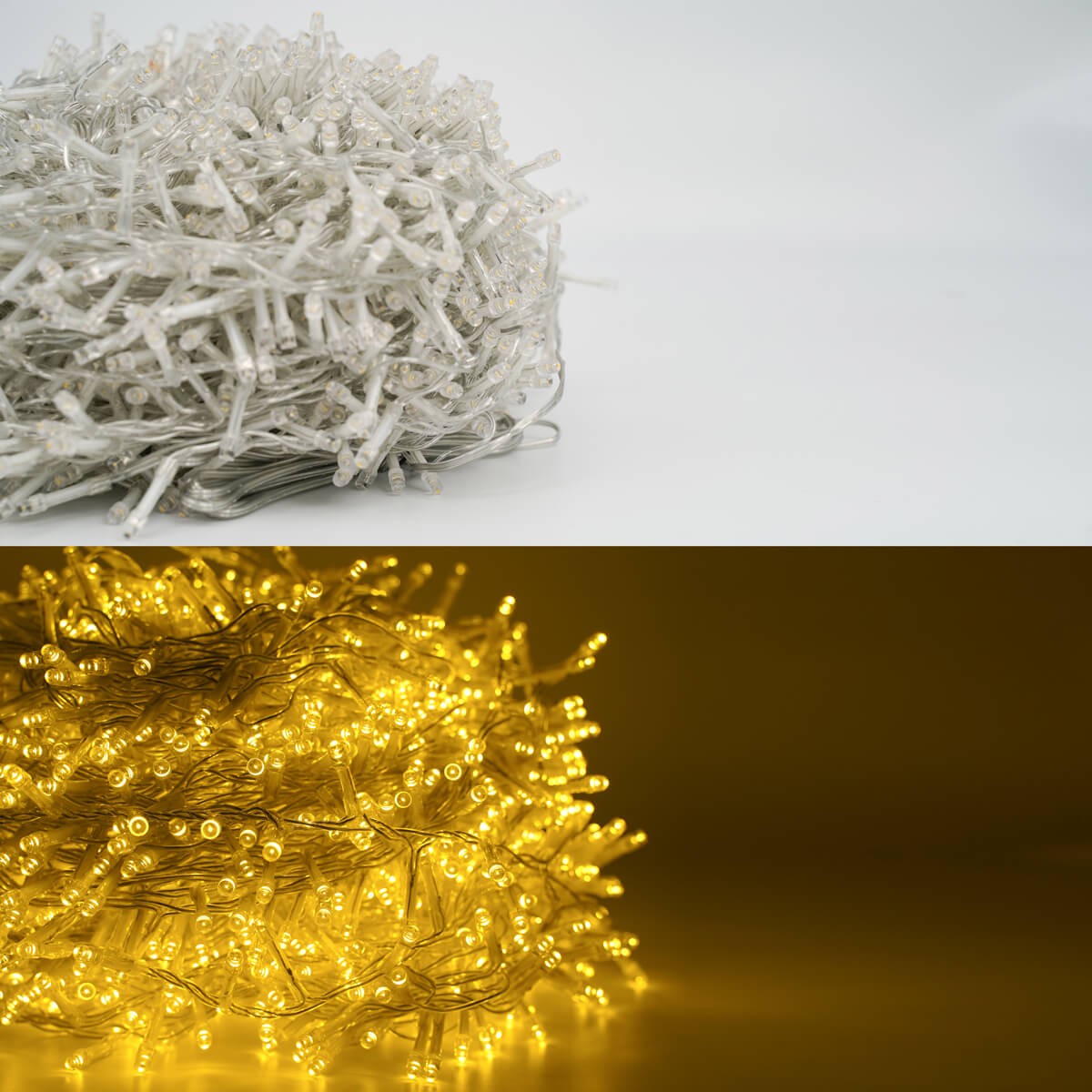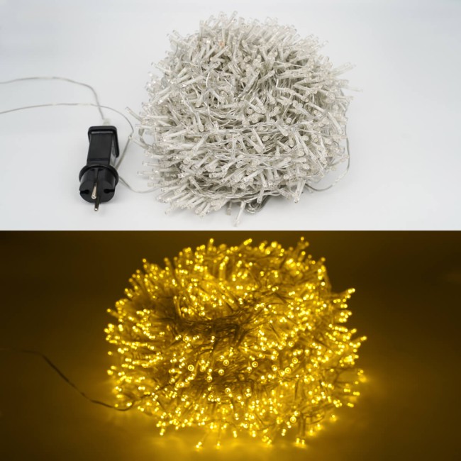 Catena Luminosa Bianco Caldo 2000 Led| Cavo Trasparente| Funzione Memory |46 metri Uso Esterno IP44