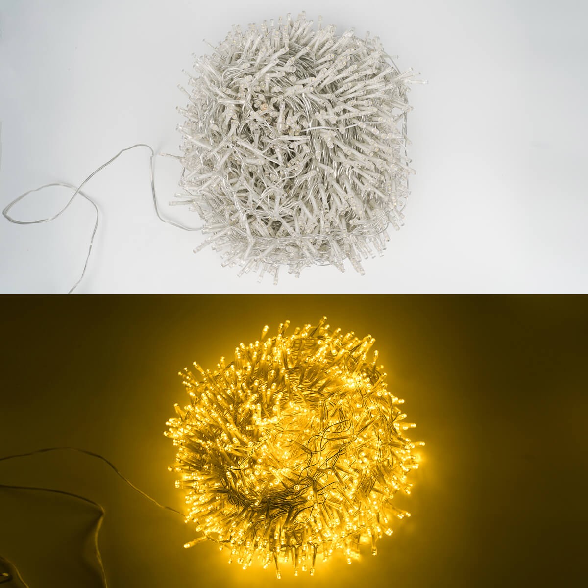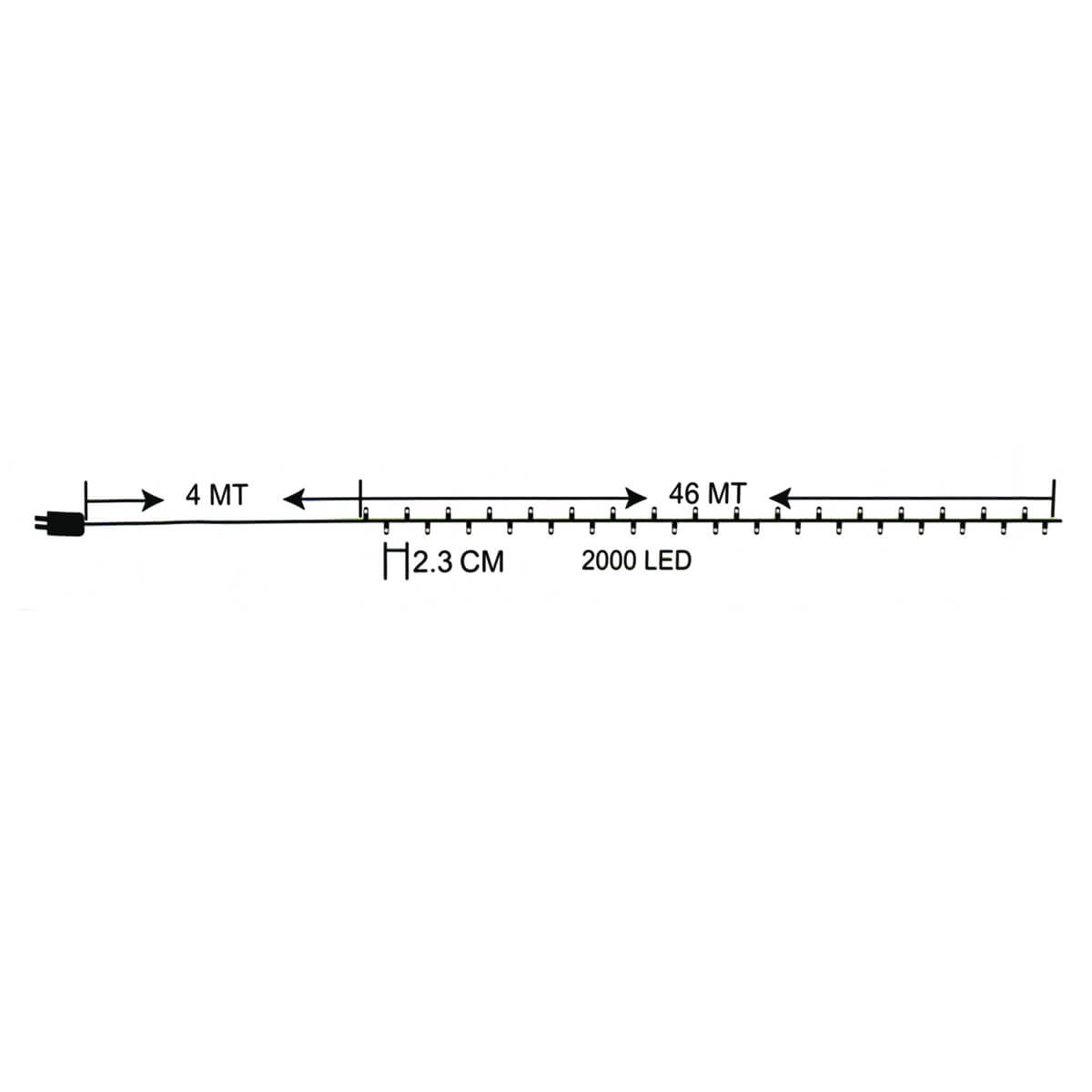 Dai vita a una magica atmosfera natalizia con la nostra Catena Luminosa lunga ben 46 metri, composto da 2000 vivaci luci led accuratamente disposte su un cavo trasparente. Ogni led è posizionato a distanza di circa 2,3 cm dagli altri, guardando in direzioni opposte per creare un incredibile effetto luminoso che cattura l'attenzione.