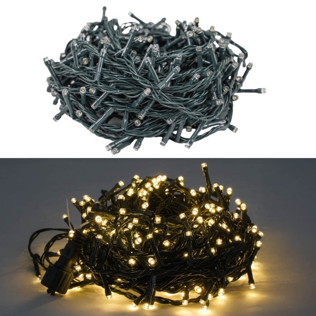 Catena luminosa natalizia 15 m con 300 LED bianco naturale – cavo verde, connettibile IP44