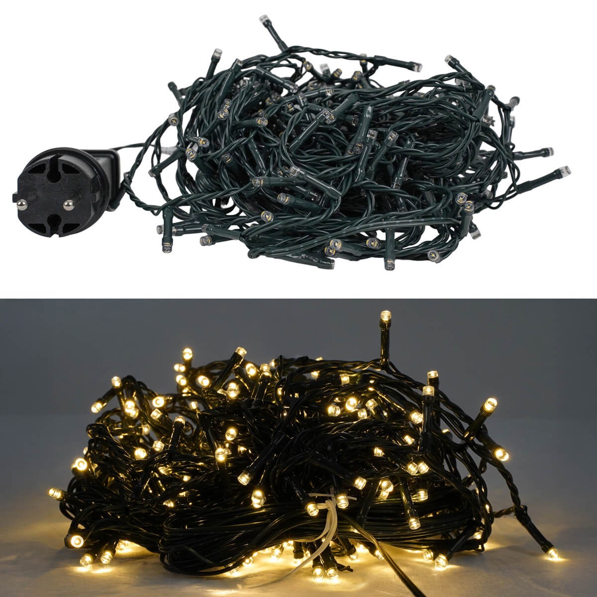 Dona luce e atmosfera ai tuoi spazi con la catena luminosa da 15 metri con 300 LED a luce bianco naturale, perfetta per decorazioni eleganti e accoglienti. Grazie al cavo verde, si mimetizza perfettamente tra rami, alberi o siepi, rendendola ideale per addobbi natalizi, terrazze e spazi interni.