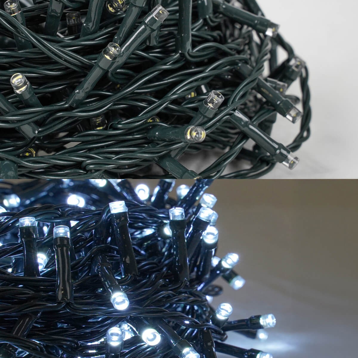 Catena Luminosa 300 Led Bianco Freddo Cavo Verde 15 m Funzione Memory