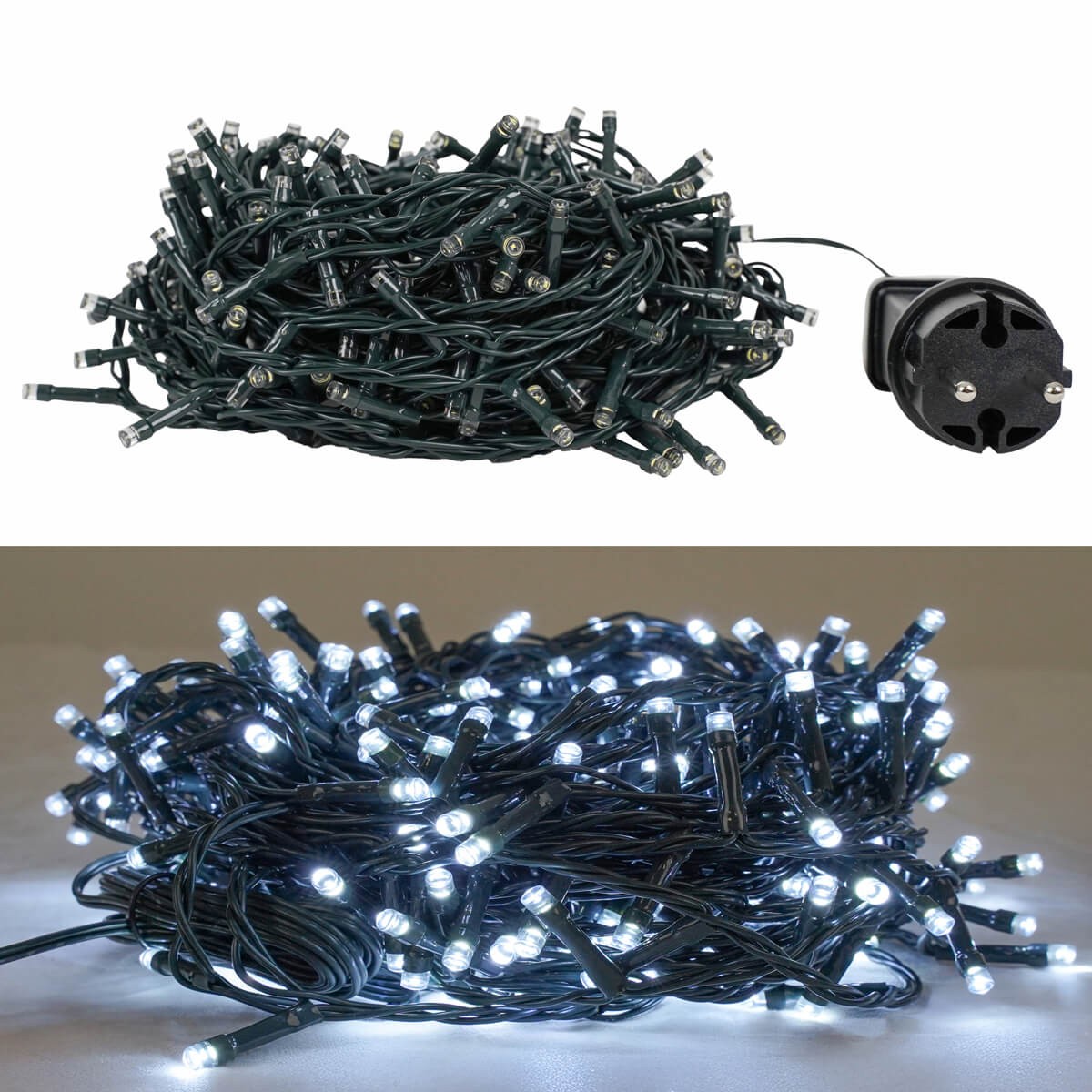 Catena luminosa 15 m 300 LED bianco freddo IP44 con funzione memory - cavo verde