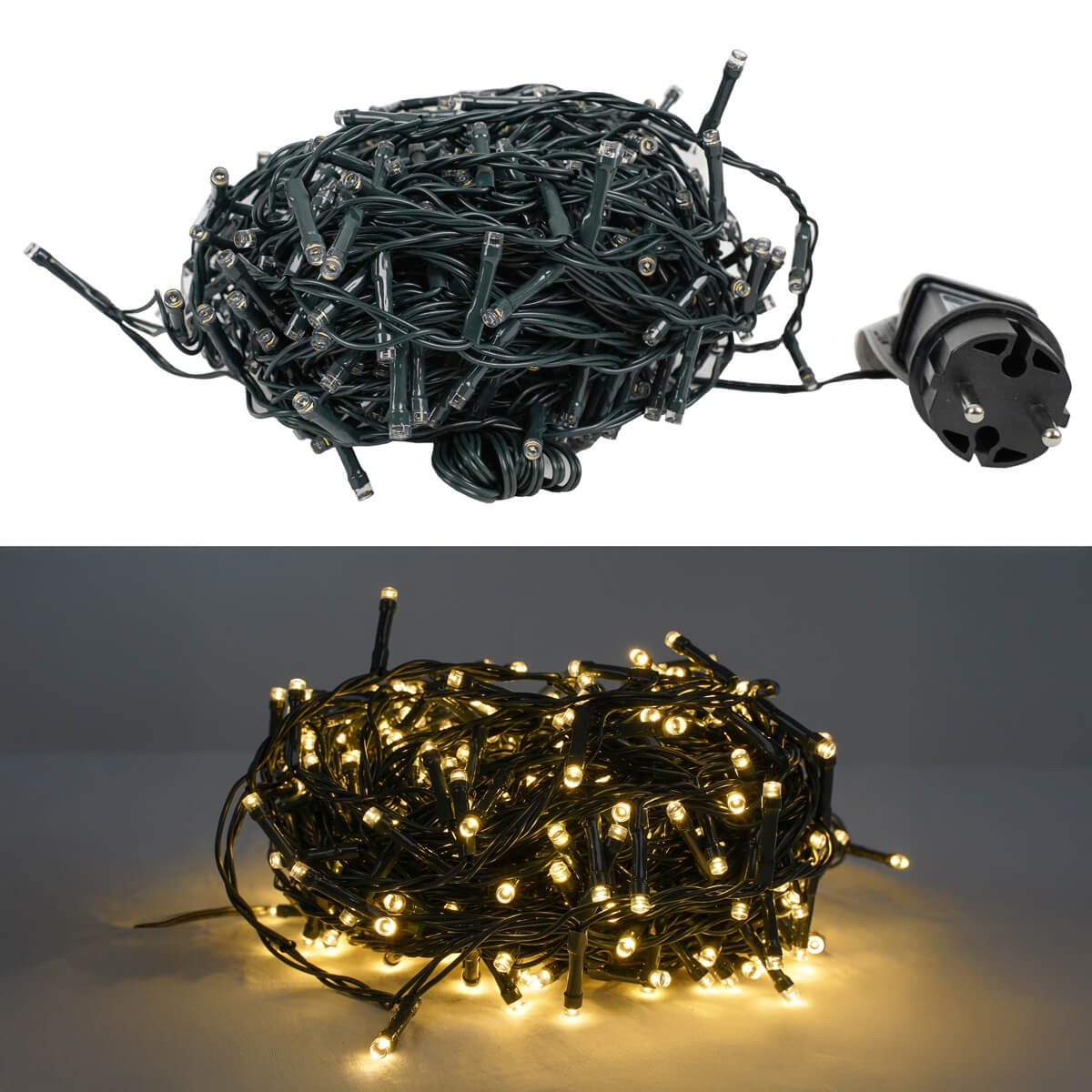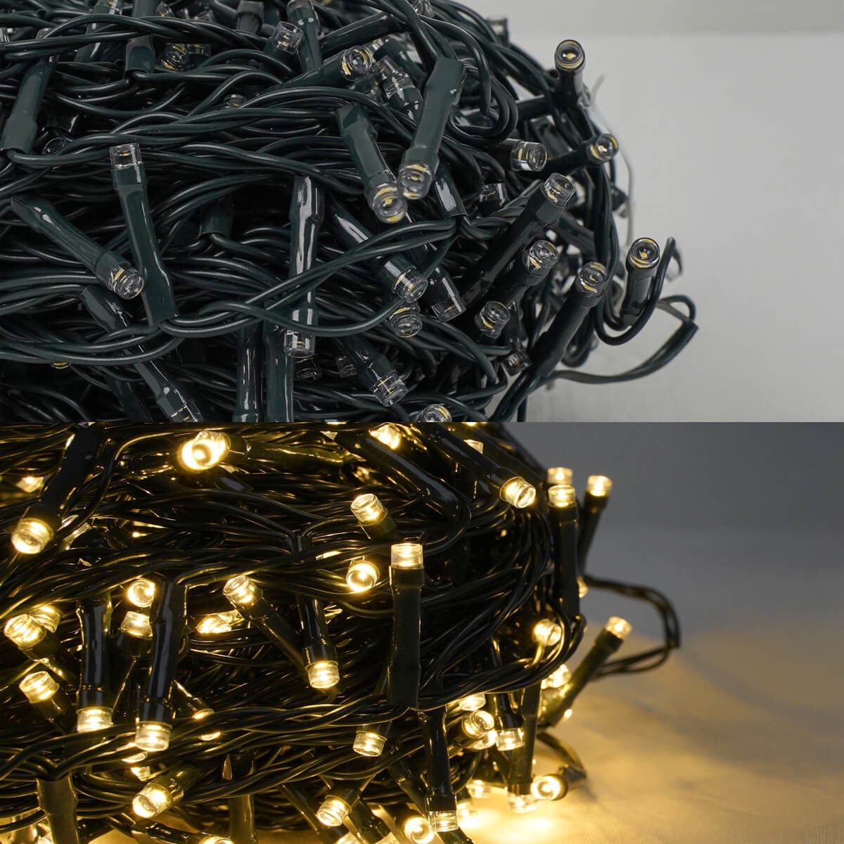 Illumina i tuoi spazi con stile e raffinatezza grazie alla catena luminosa da 24 metri con 480 LED a luce bianco naturale, perfetta per creare atmosfere calde, eleganti e accoglienti. Con il suo cavo verde discreto, si integra perfettamente tra alberi e decorazioni, rendendola ideale per uso interno ed esterno coperto.