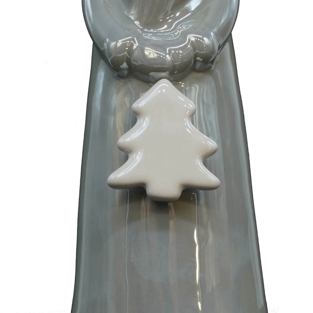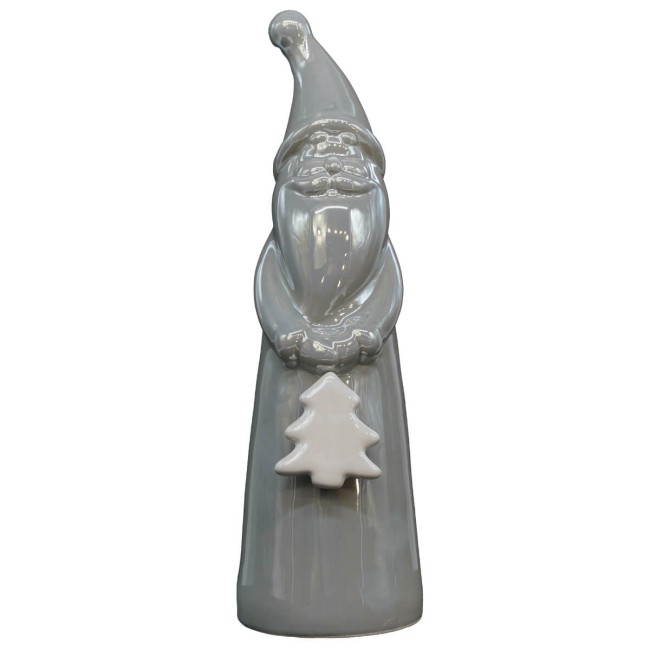 Babbo Natale Grigio in Ceramica – H 29 cm | Statuetta Natalizia Elegante con Alberello