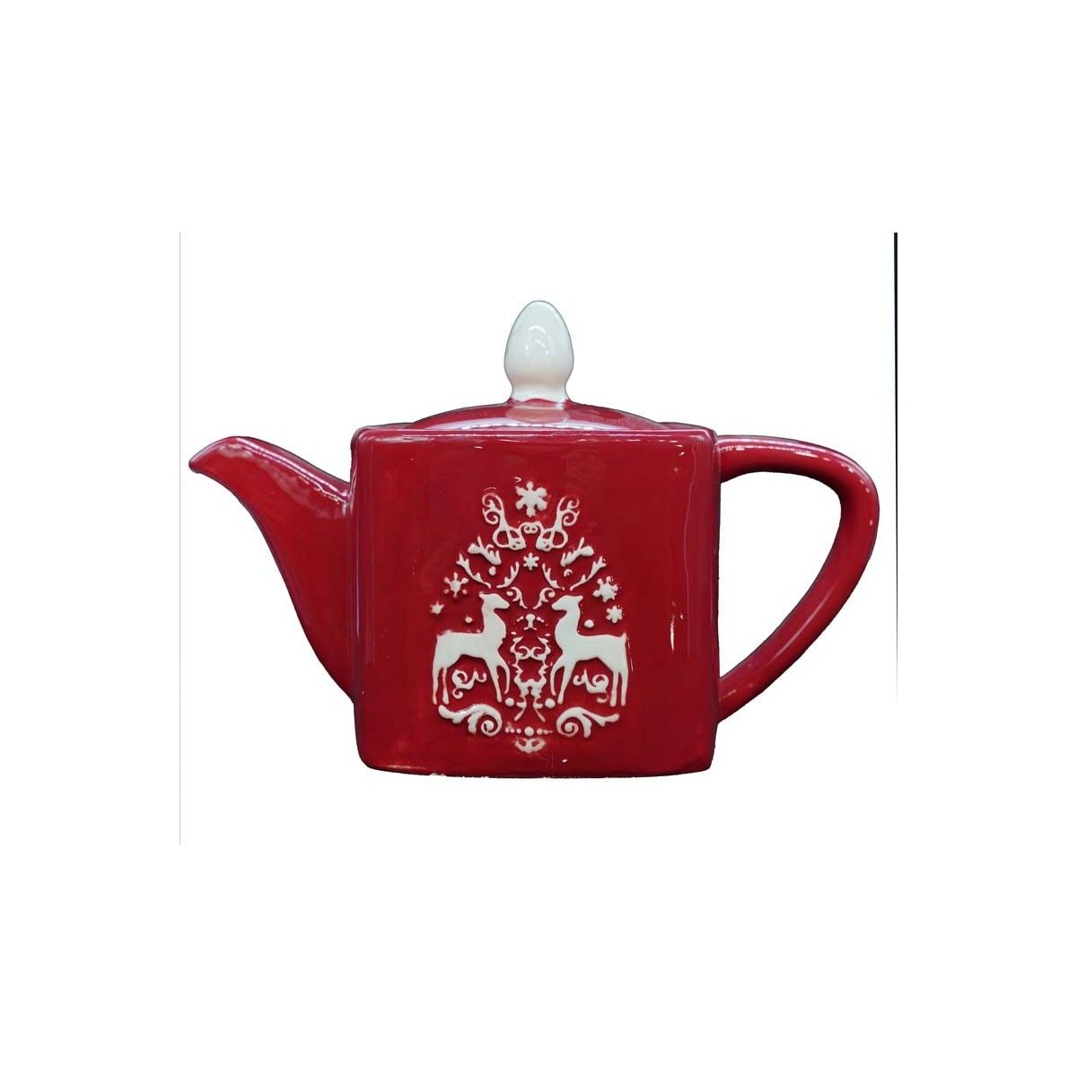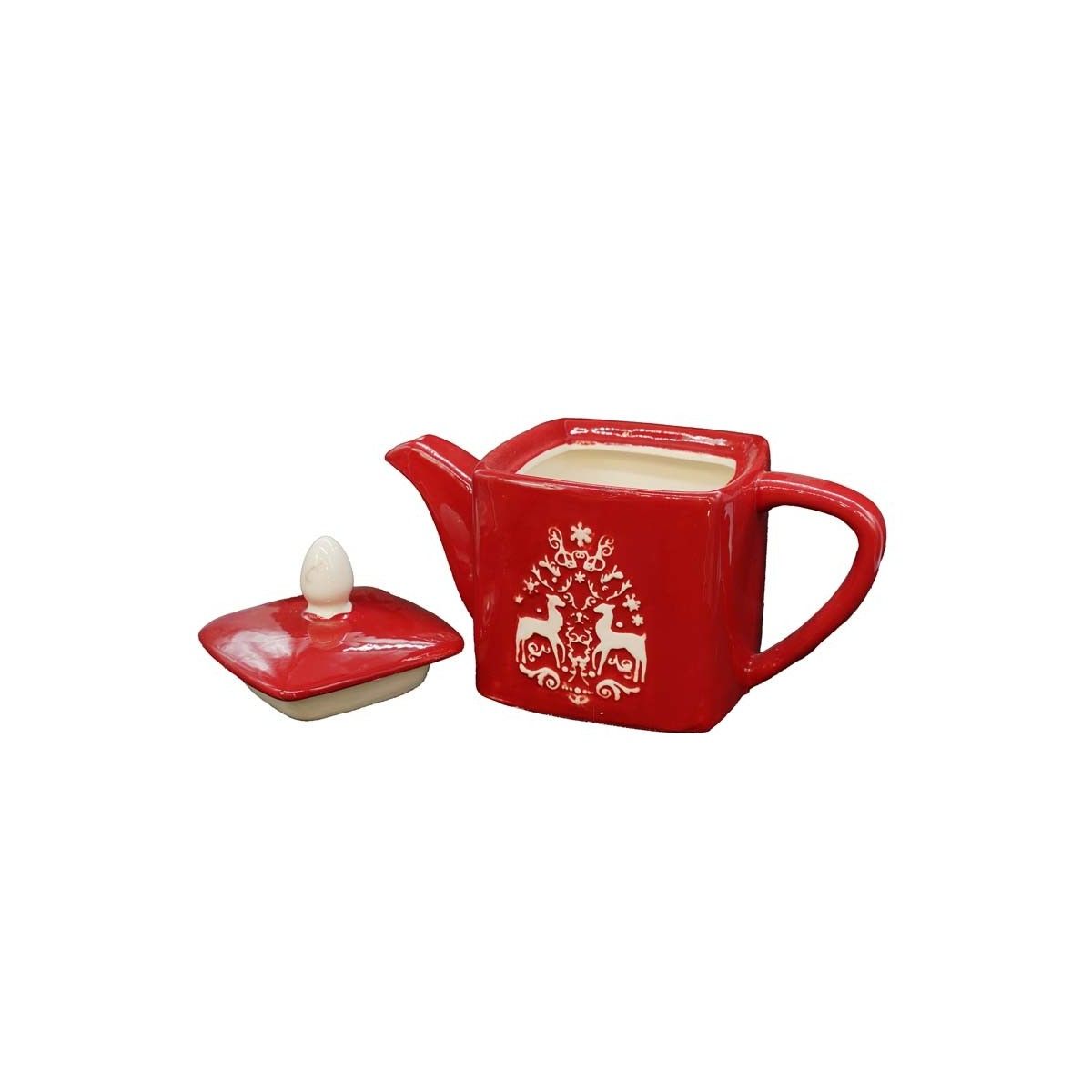 - Teiera rossa con raffigurate due renne bianche