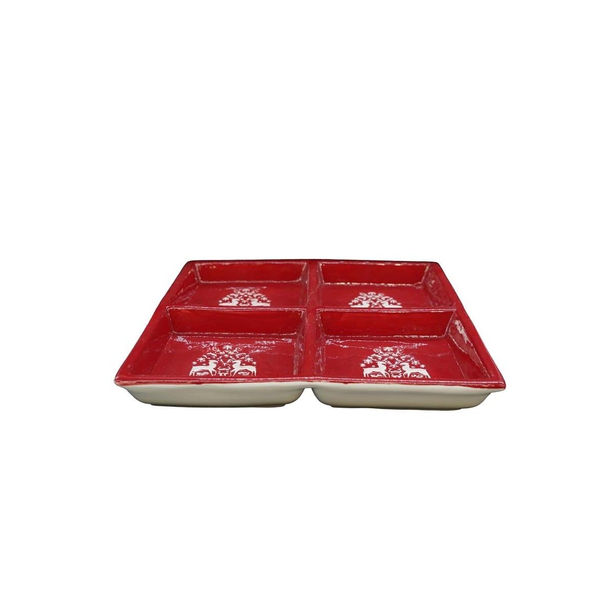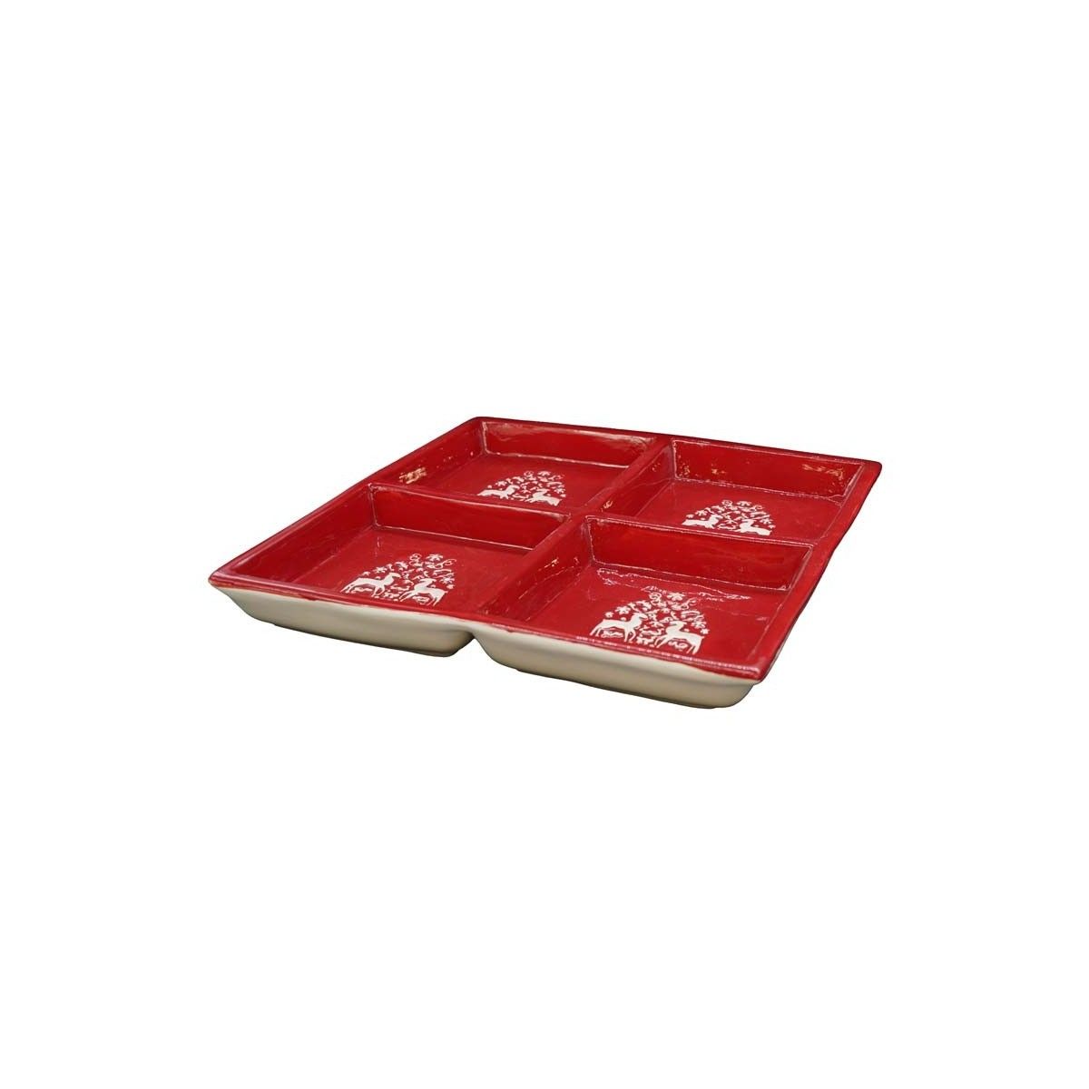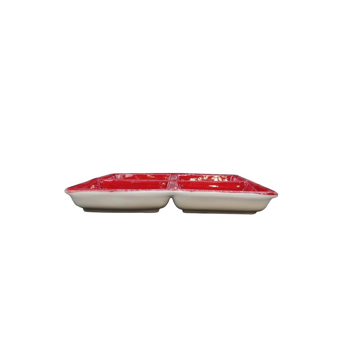 Piatto in Ceramica Rosso Diviso in 4 Sezioni