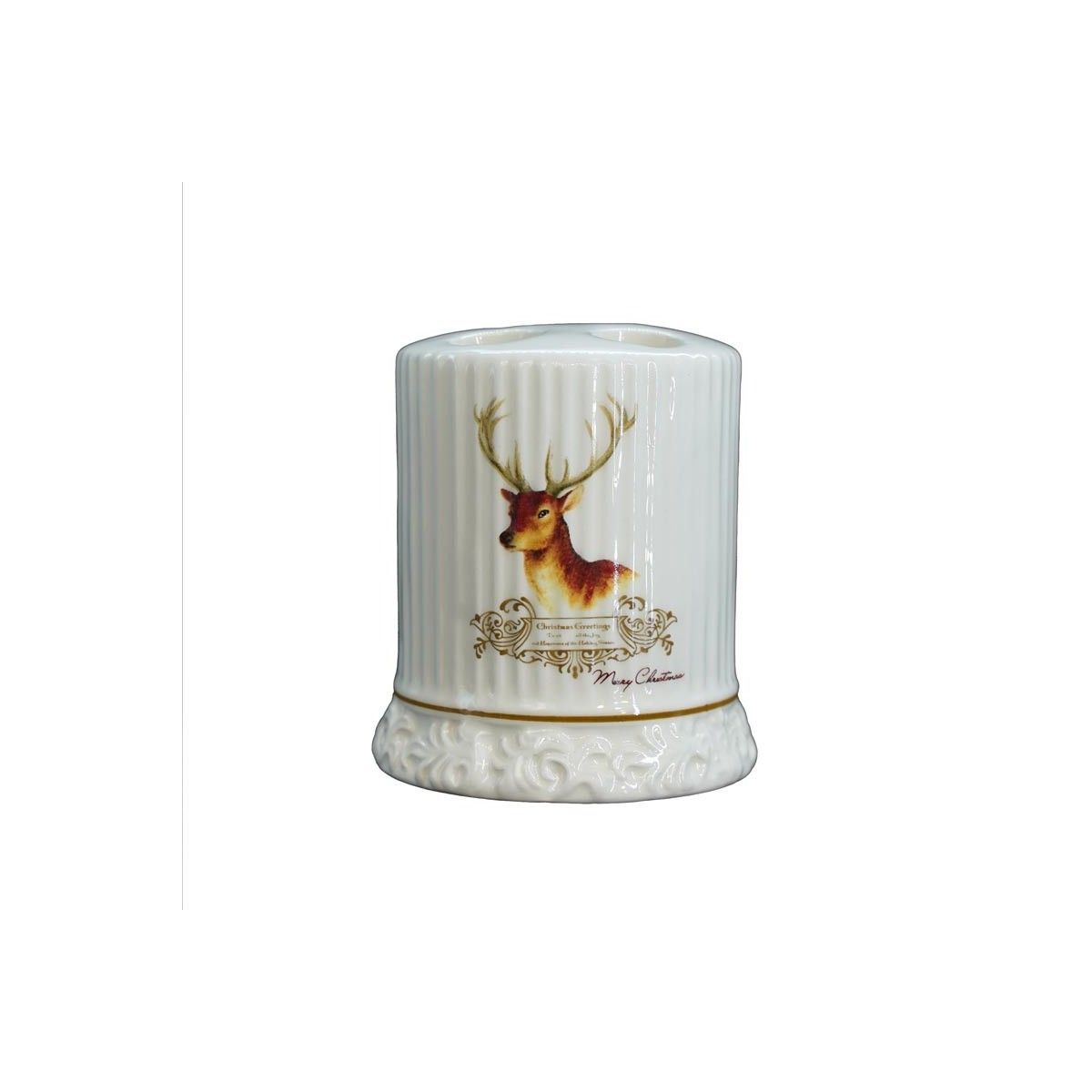 Porta Spazzolini in Ceramica Bianca con Renna H.9 cm