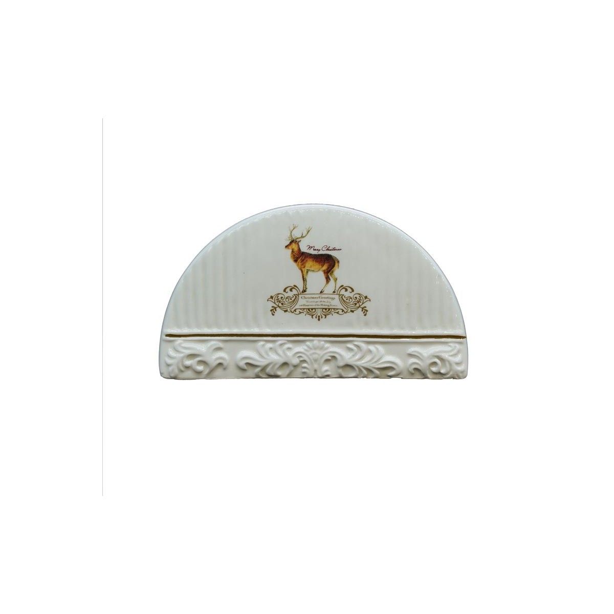 Porta Tovaglioli in Ceramica Bianca con Renna H.7 cm