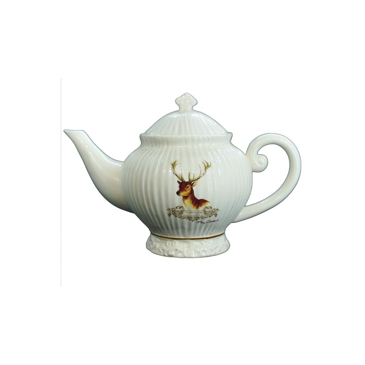 Teiera in Ceramica Bianca con Renna H.16 cm