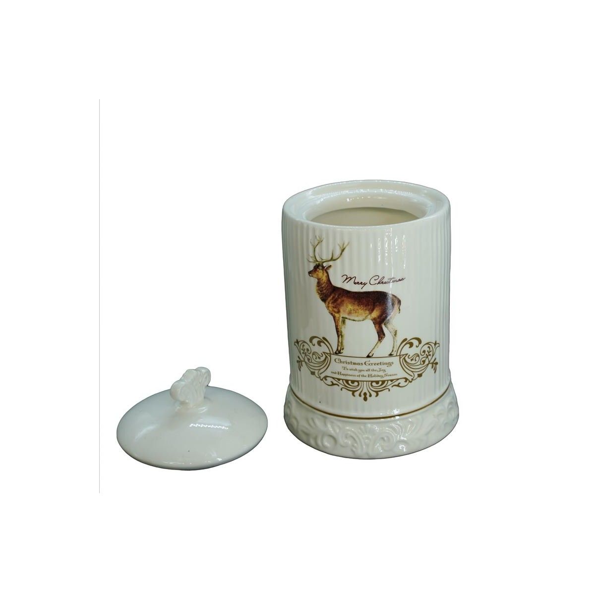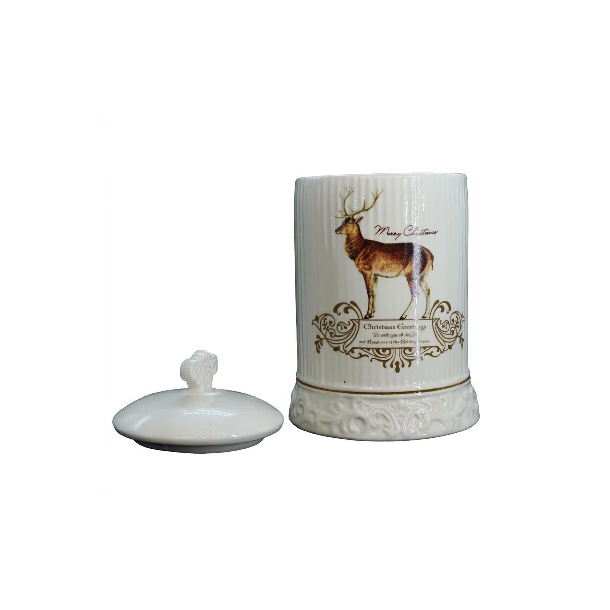 Contenitore Grande in Ceramica Bianca con Renna H.20 cm