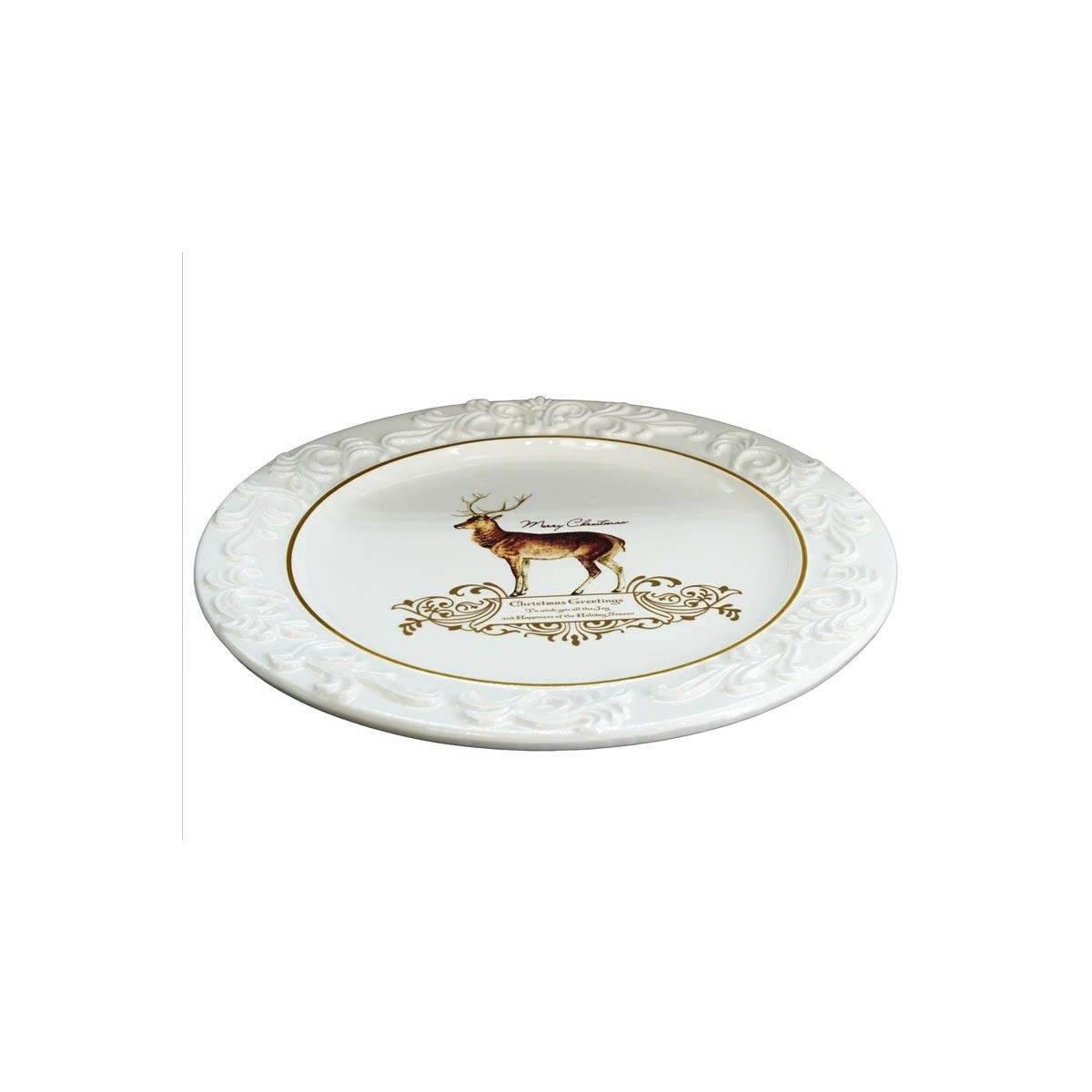 Piatto Tondo in Ceramica Bianco con Renna D.25,5 cm