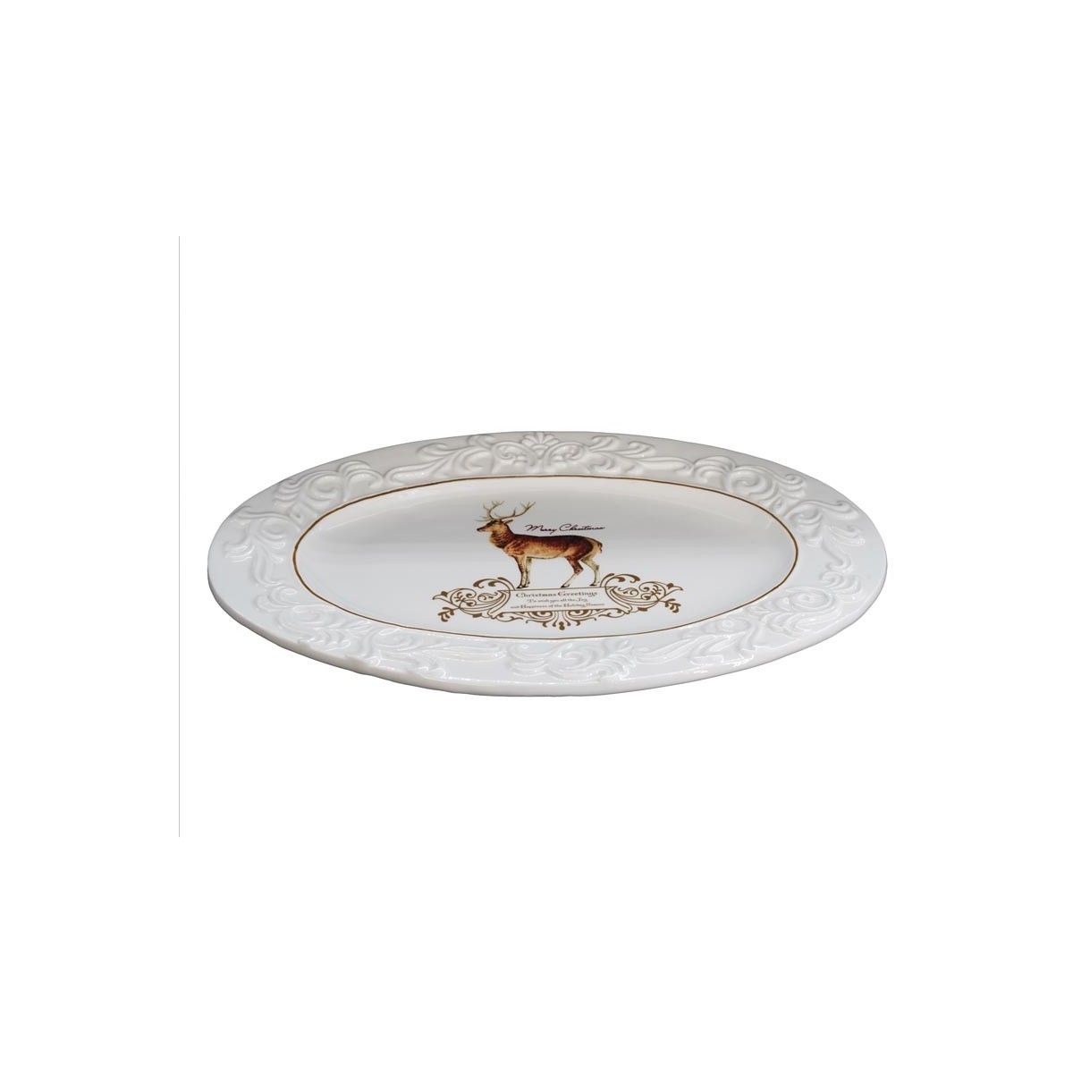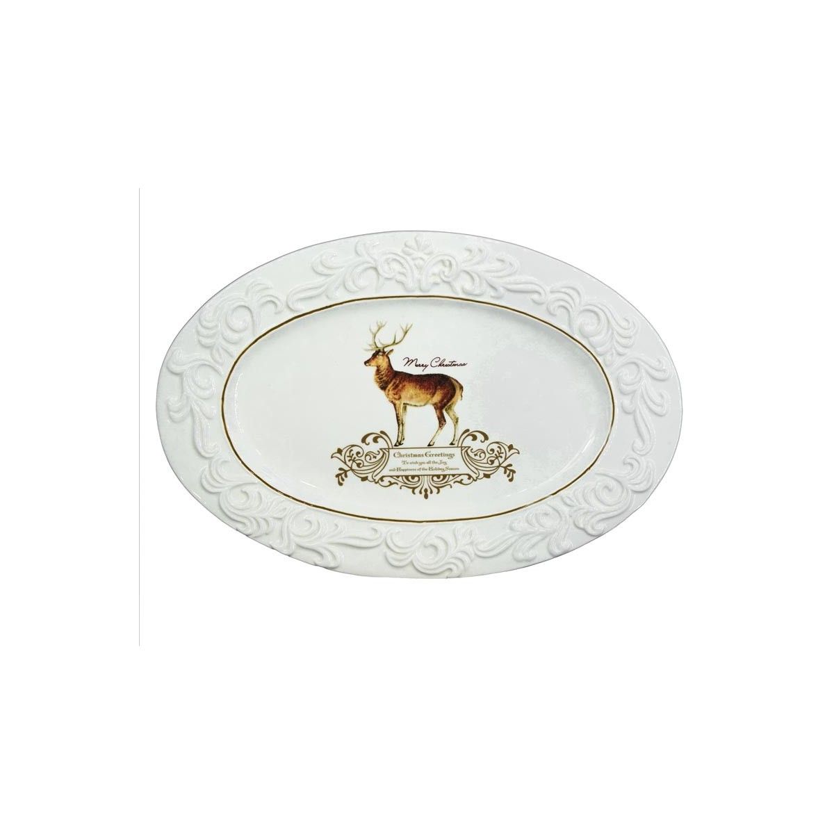 - Piatto ovale bianco con renna
