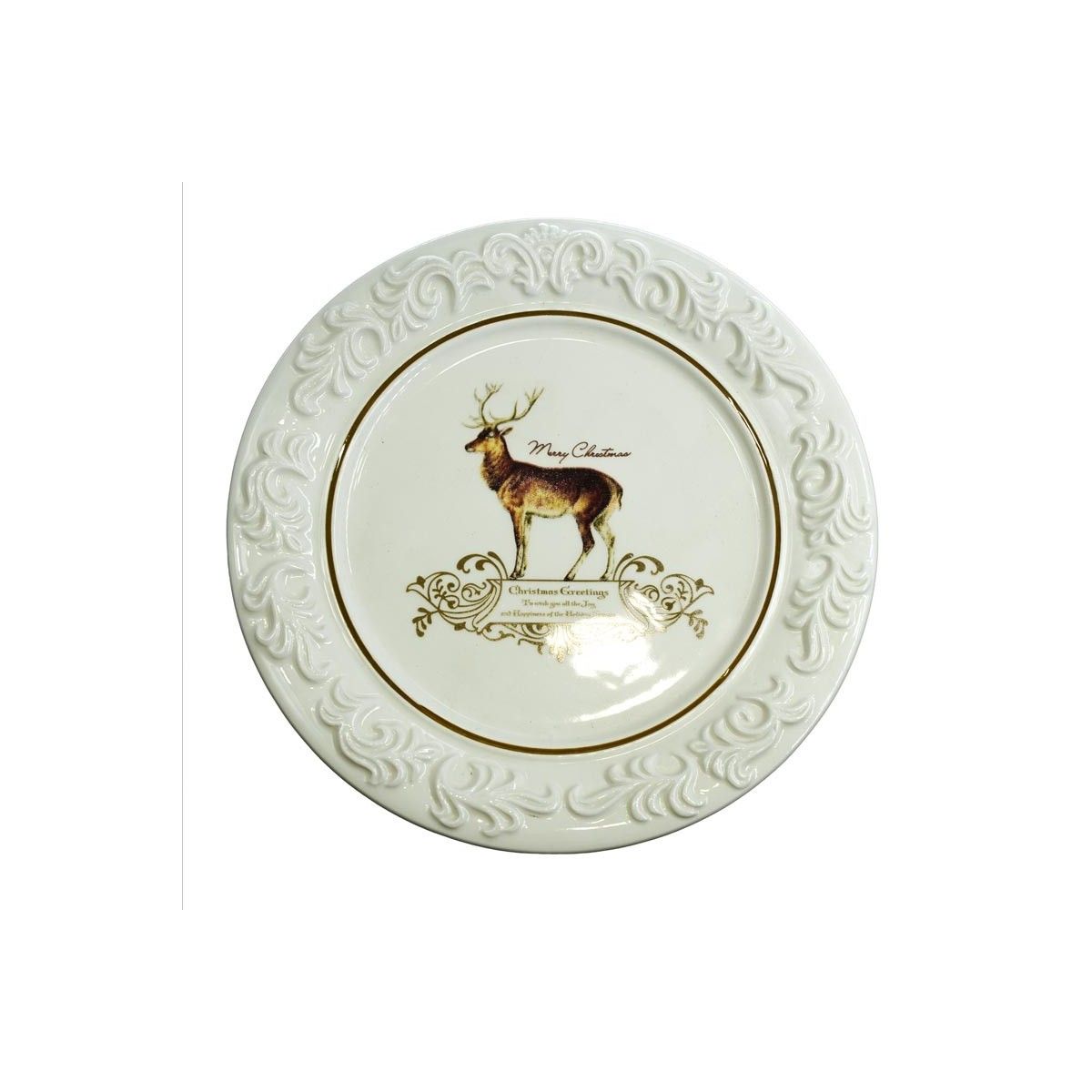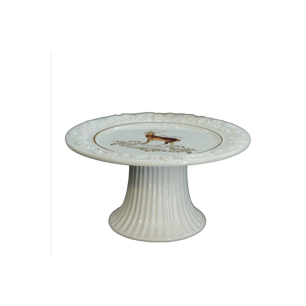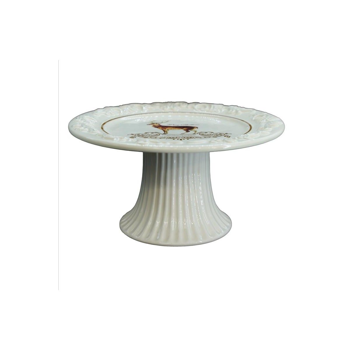 Alzatina per Torta in Ceramica Bianca con Renna H.10xD.20 cm