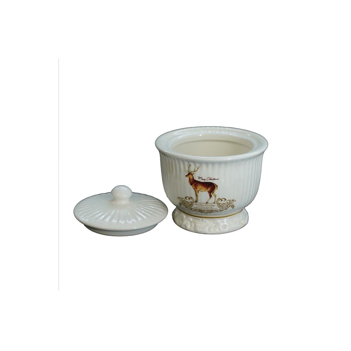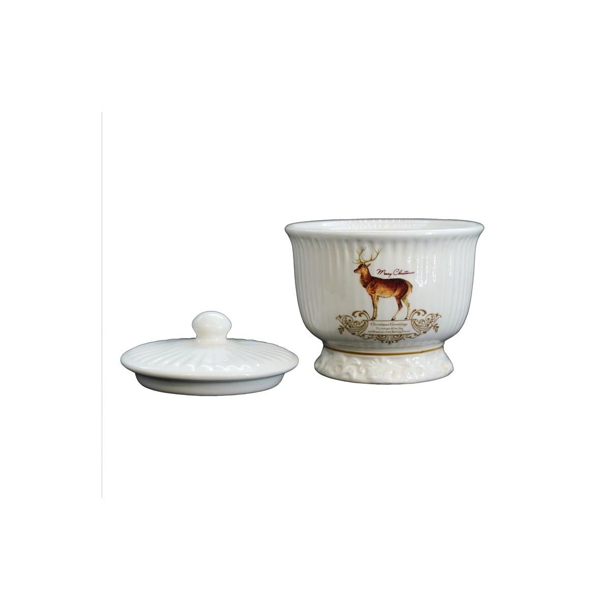 Contenitore Piccolo in Ceramica Bianca con Renna H.10 cm