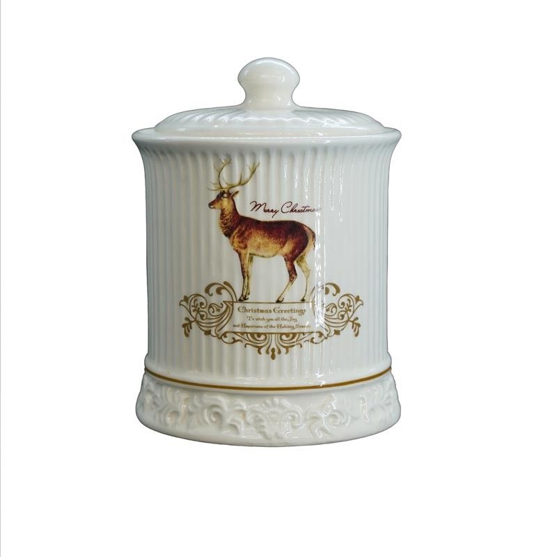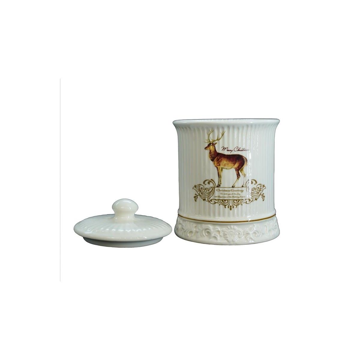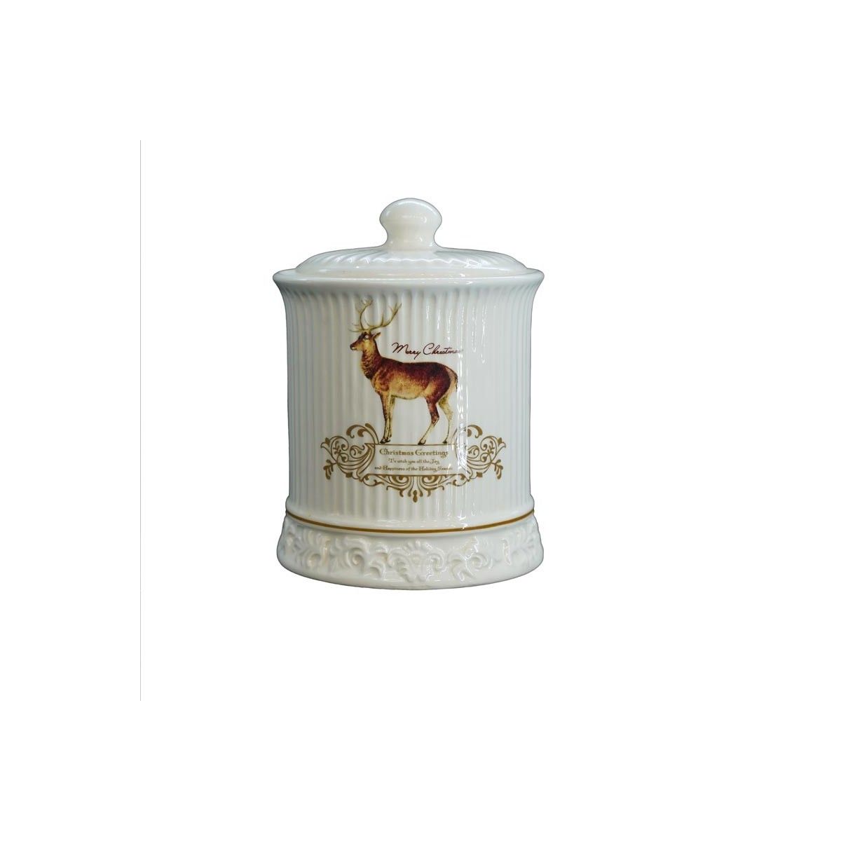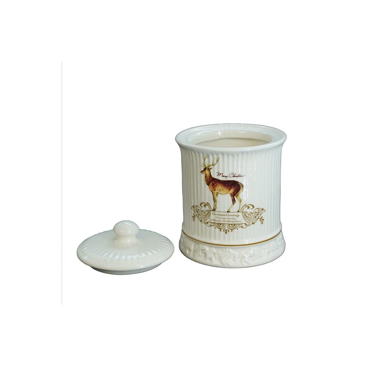 Contenitore in Ceramica Bianca con Renna H.13,5 cm