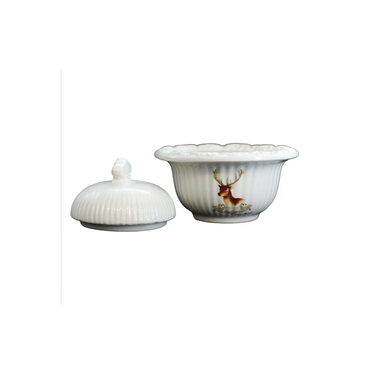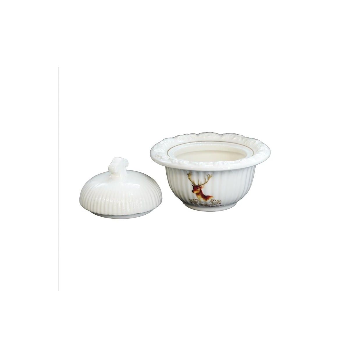 Contenitore in Ceramica Bianca con Renna H.9xD.11 cm