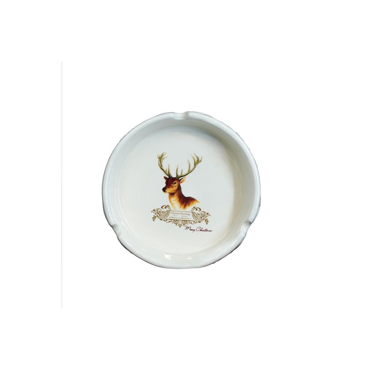 Posacenere in Ceramica Bianca con Renna D.11 cm