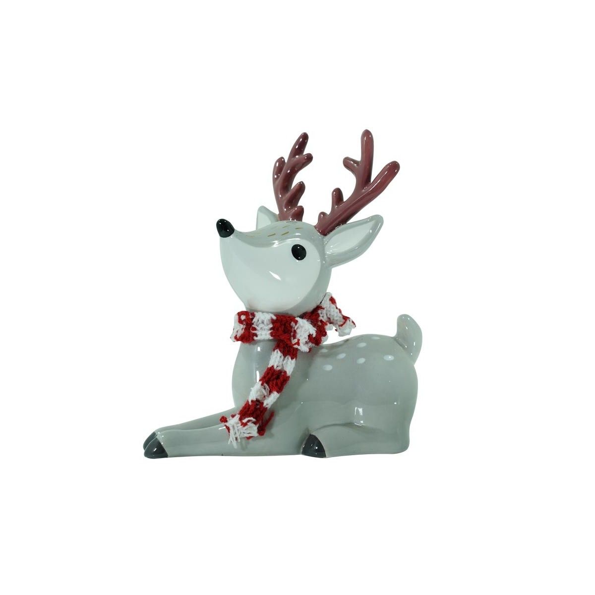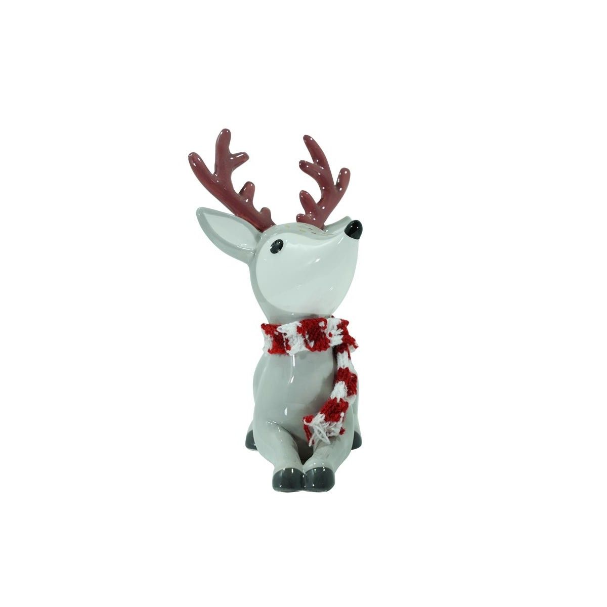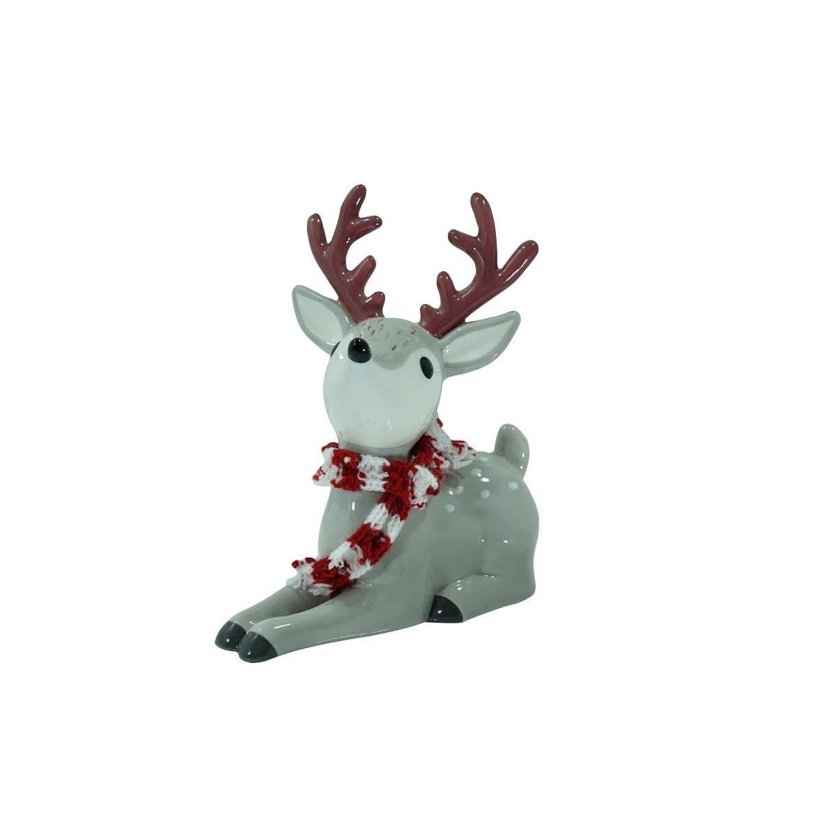 Renna Natalizia Seduta in Ceramica Grigia H.17 cm