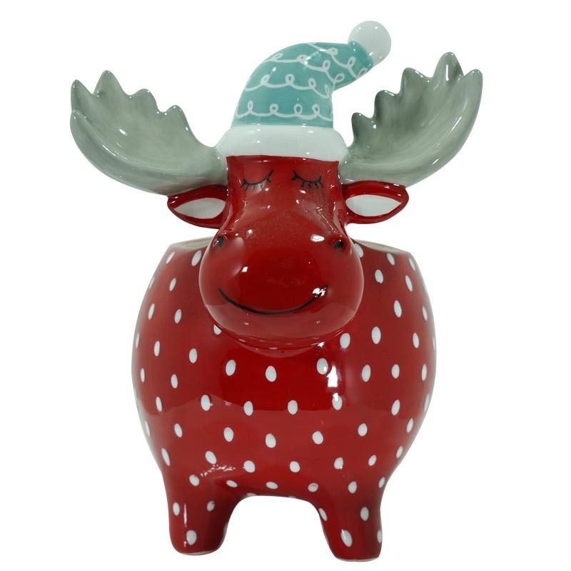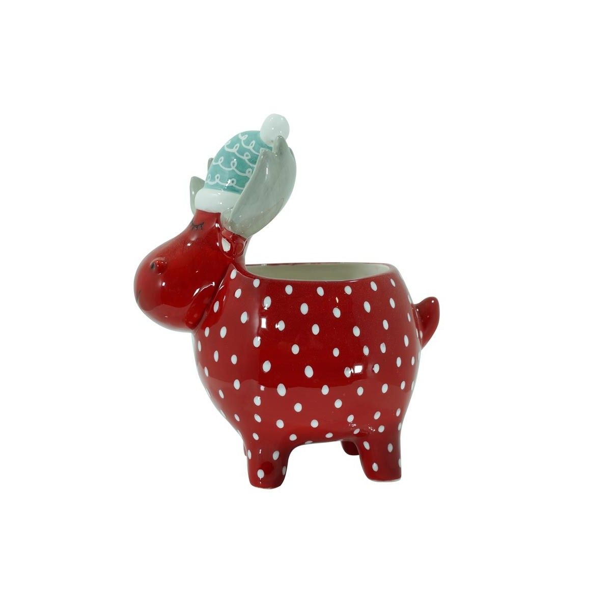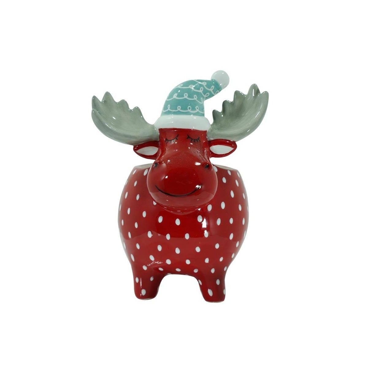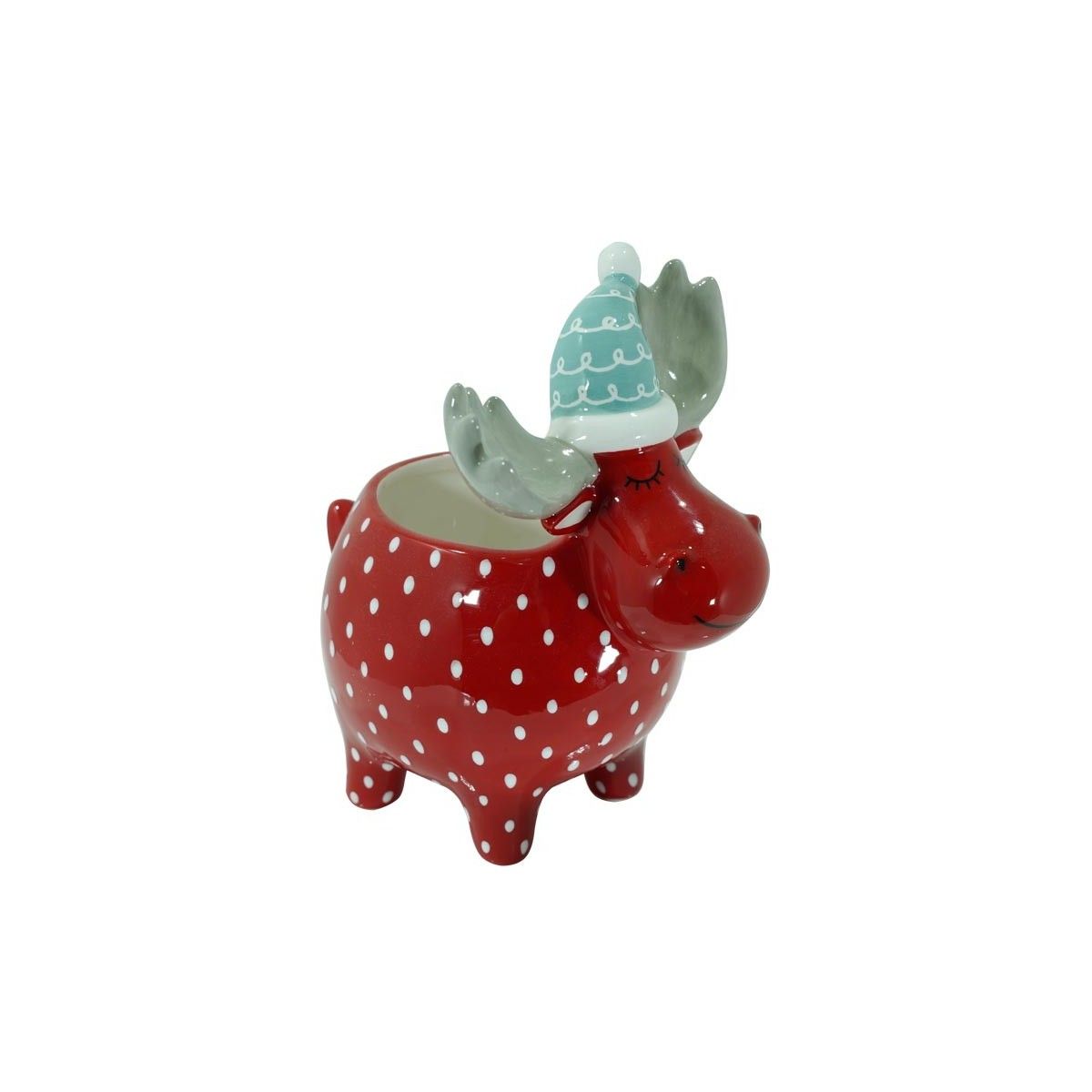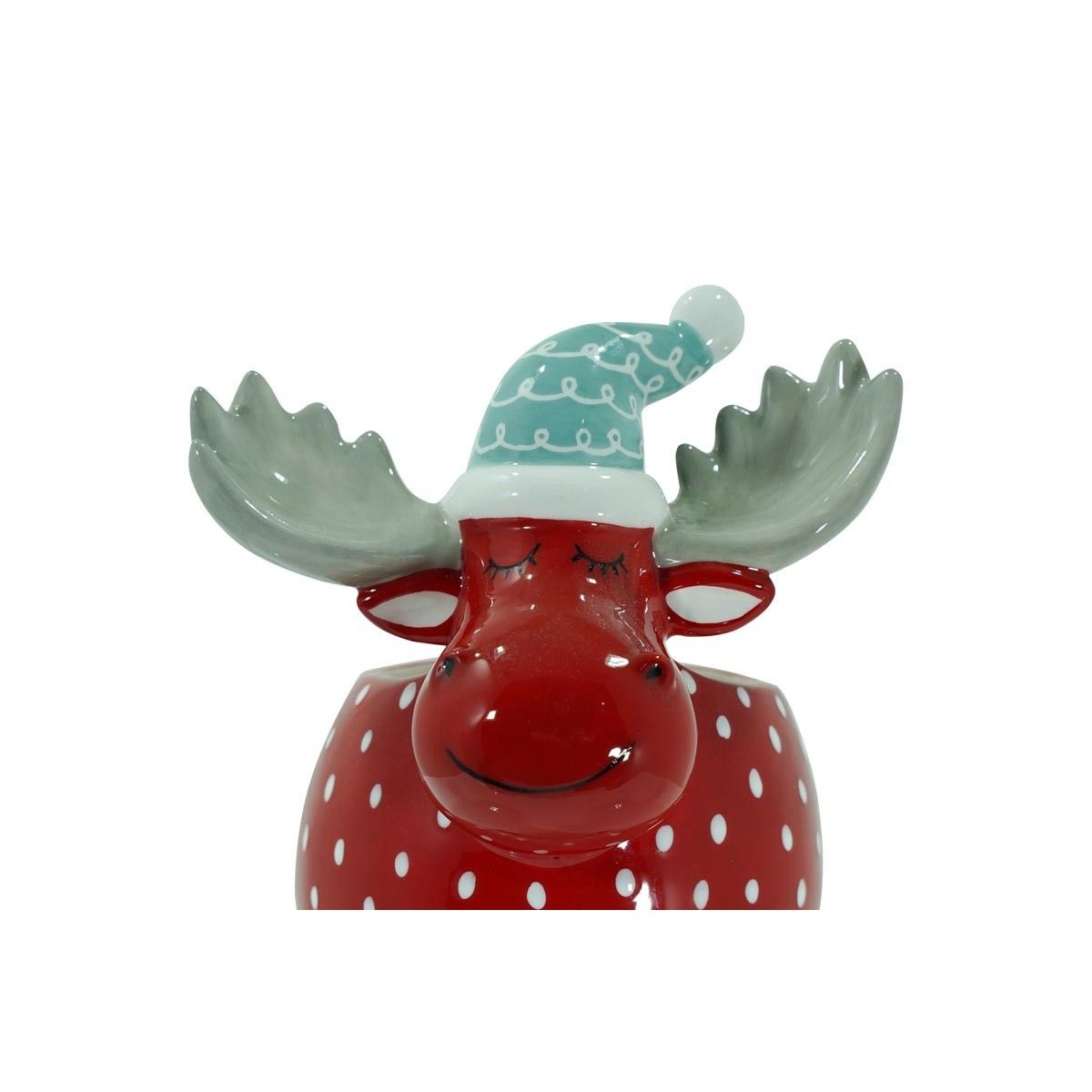 Renna Contenitore in Ceramica Rossa a Pois H.18 cm