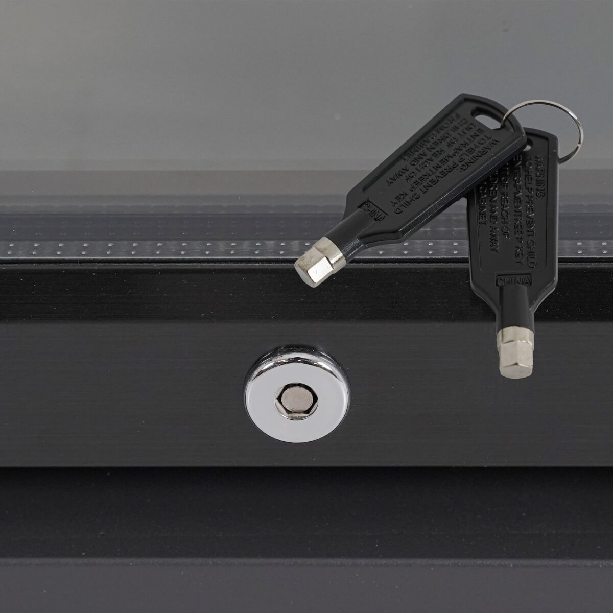 - Frigorifero da 58L con tre ripiani, temperatura da 2°C a 18°C e blocco con chiave