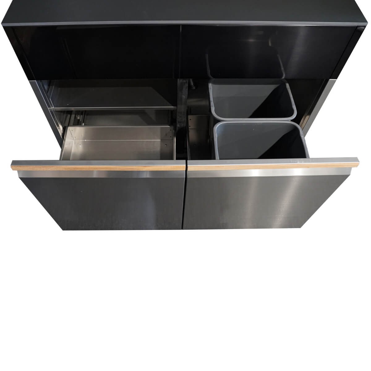- Cassetto a due ripiani con chiusura ammortizzata e vano pattumiere (40L)