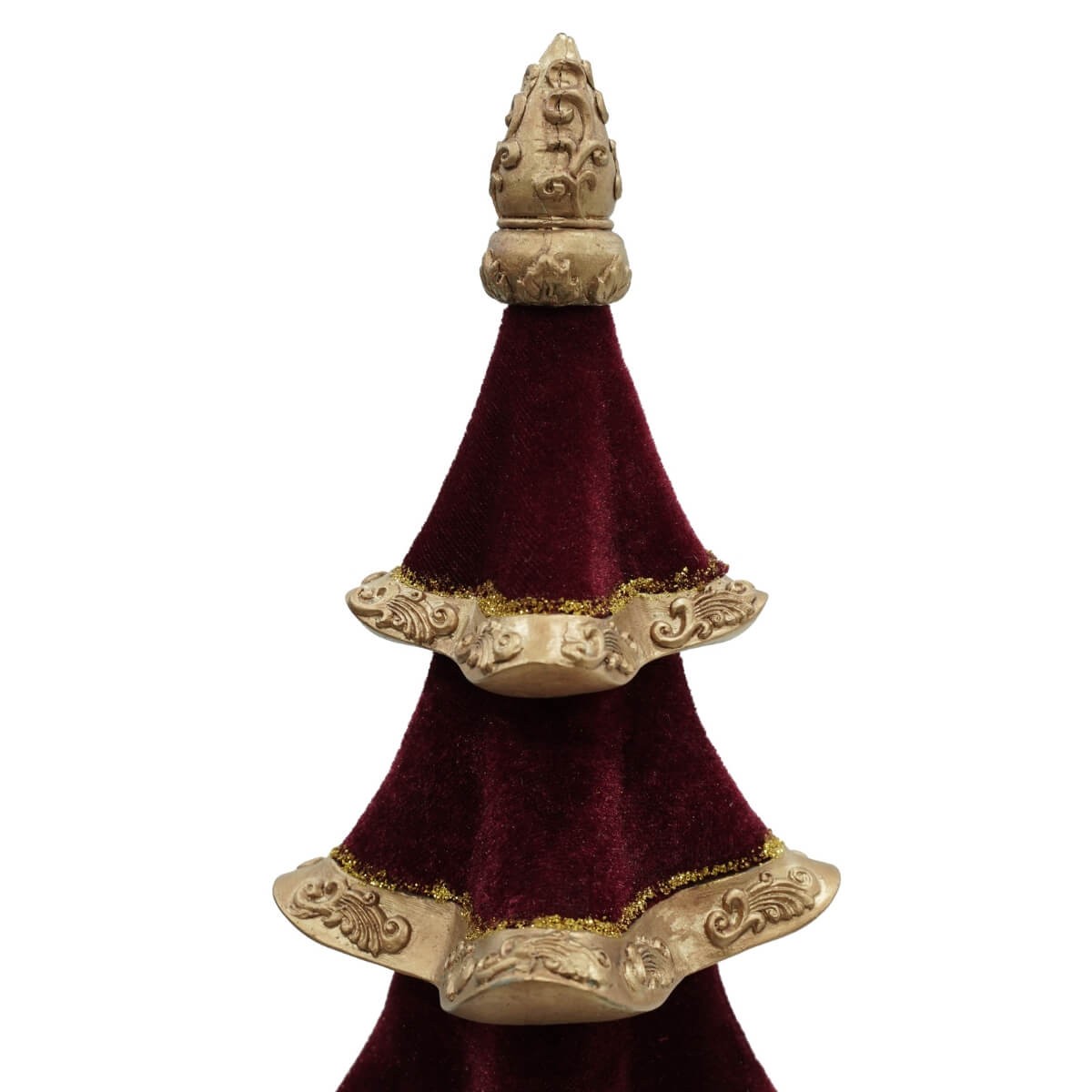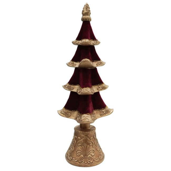 Alberello di Natale in Resina e Velluto Bordeaux con Base Oro – Eleganza Natalizia in Due Misure