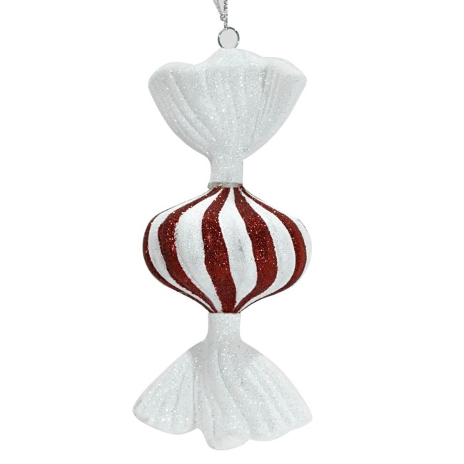 Decorazione Natalizia Caramella da Appendere Bianco e Rosso Glitter – H.16,5 cm