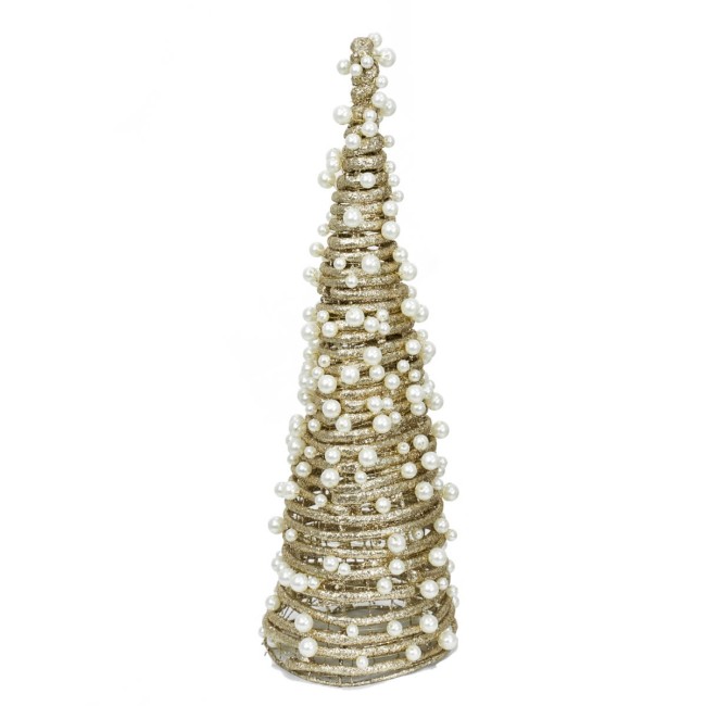 Dona un tocco glamour alle tue decorazioni natalizie con l’alberello decorativo color oro, impreziosito da perline effetto perla. Un complemento elegante e luminoso, perfetto per allestimenti raffinati, vetrine natalizie, tavoli festivi o angoli decorativi in casa e in negozio.
