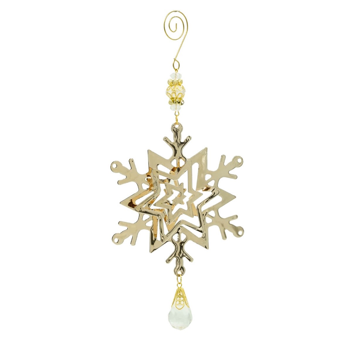 Fiocco di Neve Natalizio Oro con Pendente – Decoro in Metallo da Appendere 10,5x12 cm