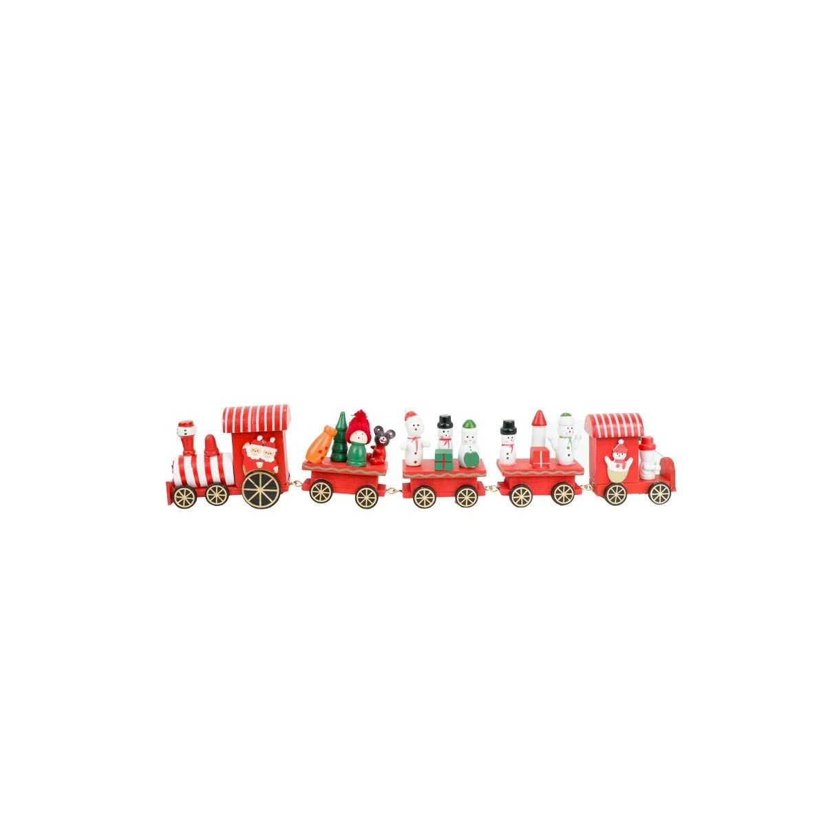 Trenino Natalizio in Legno con Pupazzi di Neve 39x7,5 cm