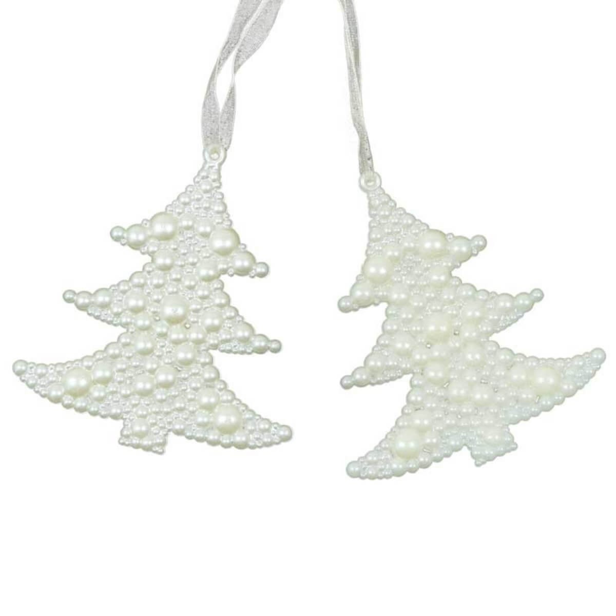 Alberelli di Natale Perlati da Appendere – Set 2 Pezzi in Plastica Elegante
